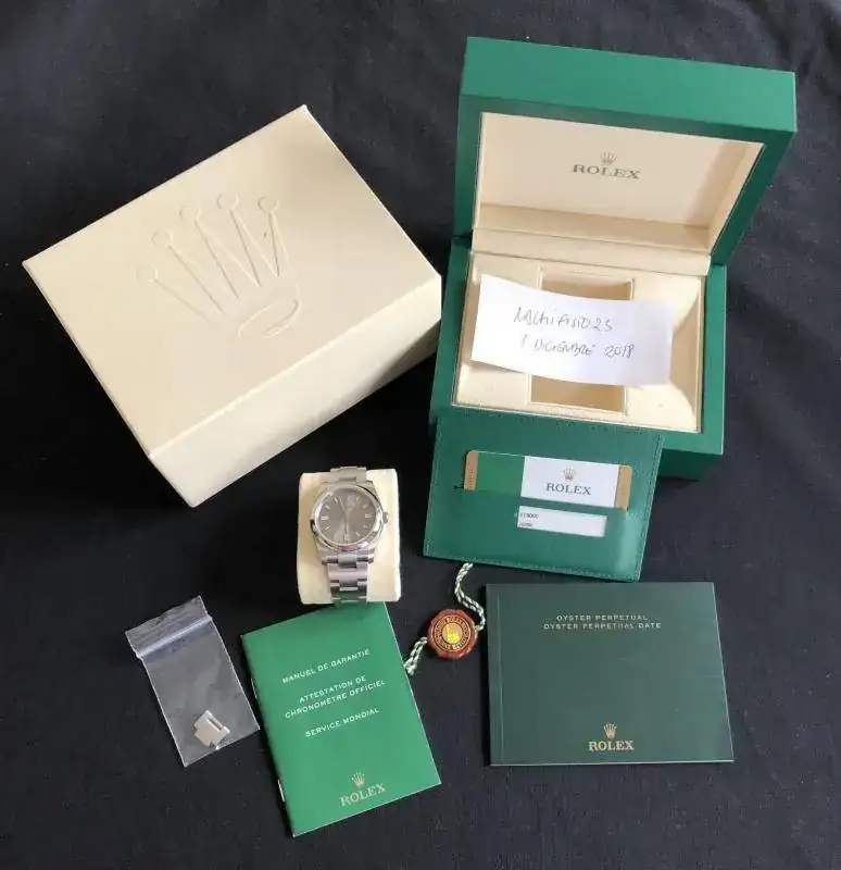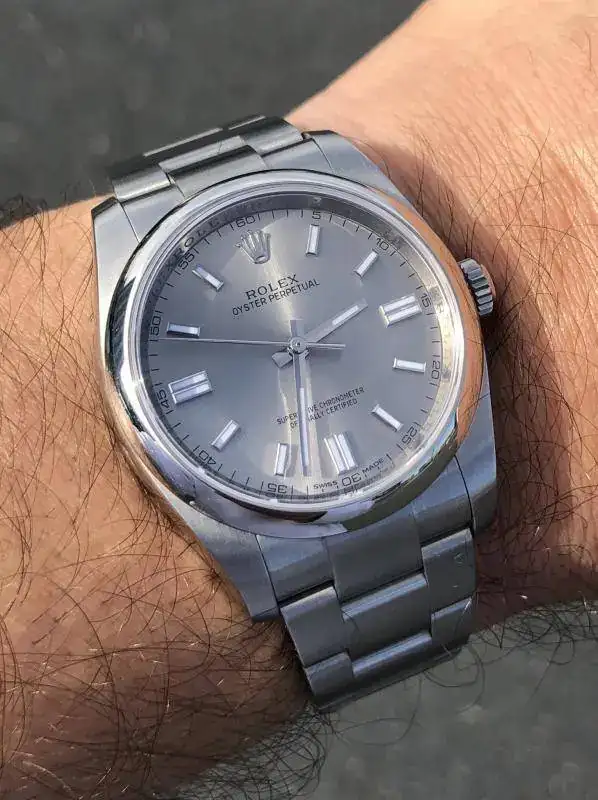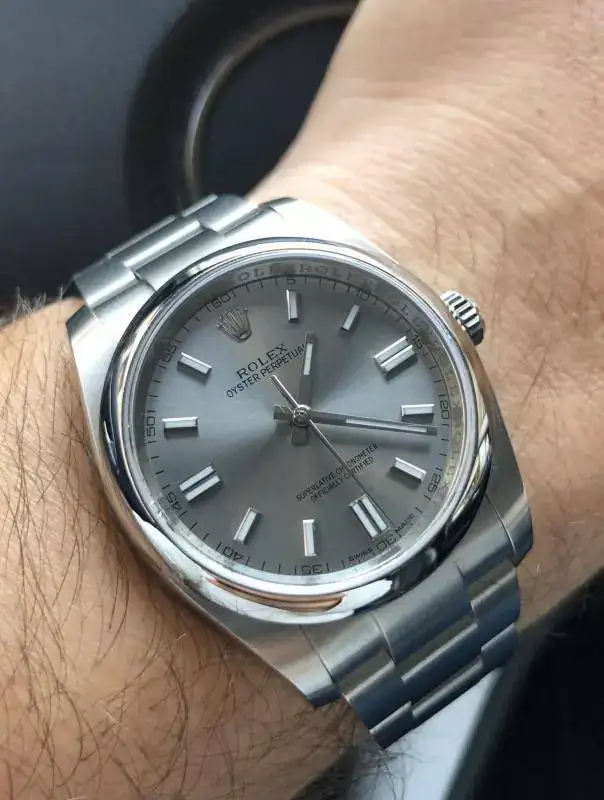 Saco para venta este precioso Rolex Oyster Perpetual de 36mm, con una bonita esfera gris acero. El reloj se encuentra en un estado impoluto, muy bueno, a las fotos me remito. Por supuesto nunca ha sido pulido. Comprado en Co Nacional en 2015, tiene set completo. Para ser de 36mm tiene un presencia en la muñeca bastante contundente, eso sumado al hecho de que no tiene fecha hace que tenga una lectura en la muñeca exquisita.No me interesan cambios.