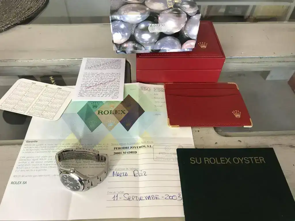 Set completo,caja y documentación son de reestreno si se puede decir así,nunca han visto la luz ni se han manipulado desde que se compró el reloj.