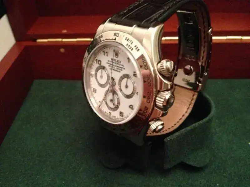 Hola a todos, saco a la venta mi Rolex Daytona de oro blanco. El reloj es de 2.005, se encuentra en muy buenas condiciones y funciona perfectamente.