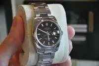 Pongo en venta esta preciosidad de Rolex Oyster Perpetual Date 115200 con fondo negro en un estado de reetreno absoluto.