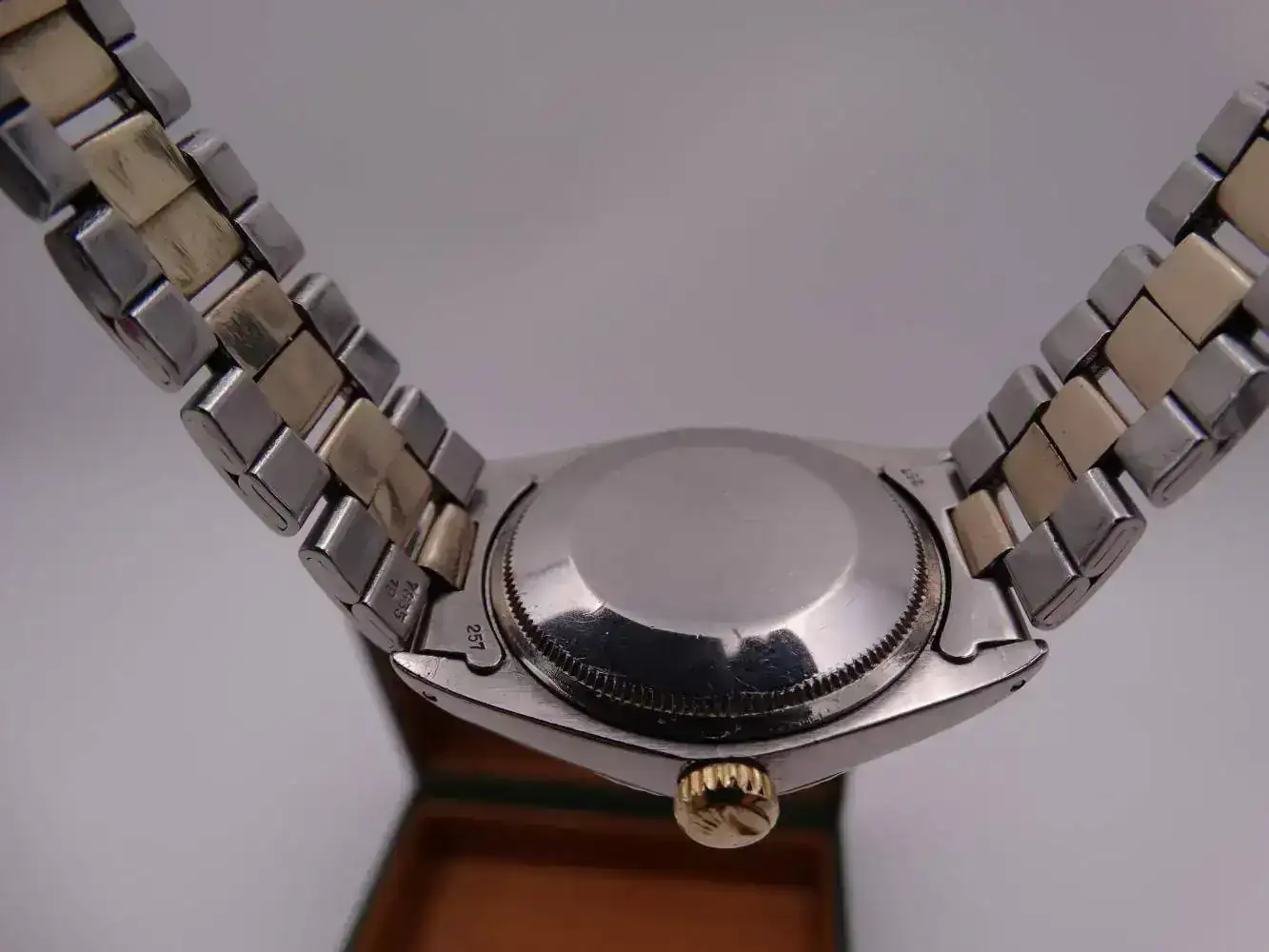 La caja construida en acero y oro, con su famoso armis oyster confieren al conjunto un resultado fabuloso.