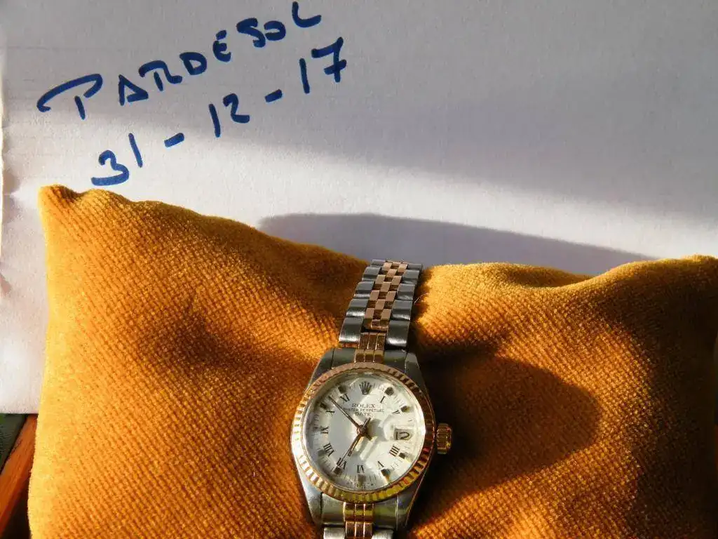 Por circunstancias familiares ha llegado a mis manos este Rolex de señora , que pongo a la venta pues ya obsequié en su día con uno a mi mujer. se trata de un Oyster Perpetual Date acero y oro. El reloj esta usado con señales de uso normal. Entiendo que puede ser un estupendo regalo para nuestras queridas MDD.