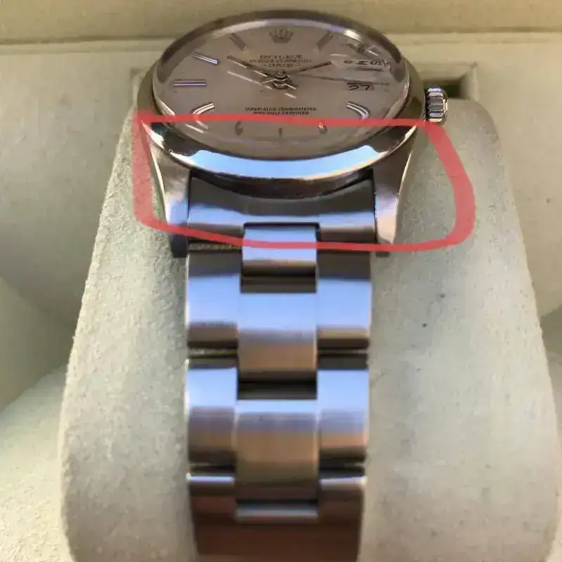 [FONT="]El brazalete no presenta casi holgura, tiene 12 eslabones validos para muñecas de mas de 20 cm, uno de los End Link del reloj está algo achatado, ver foto con círculo rojo señalando la pieza, entregó unos after market nuevos.[/FONT]