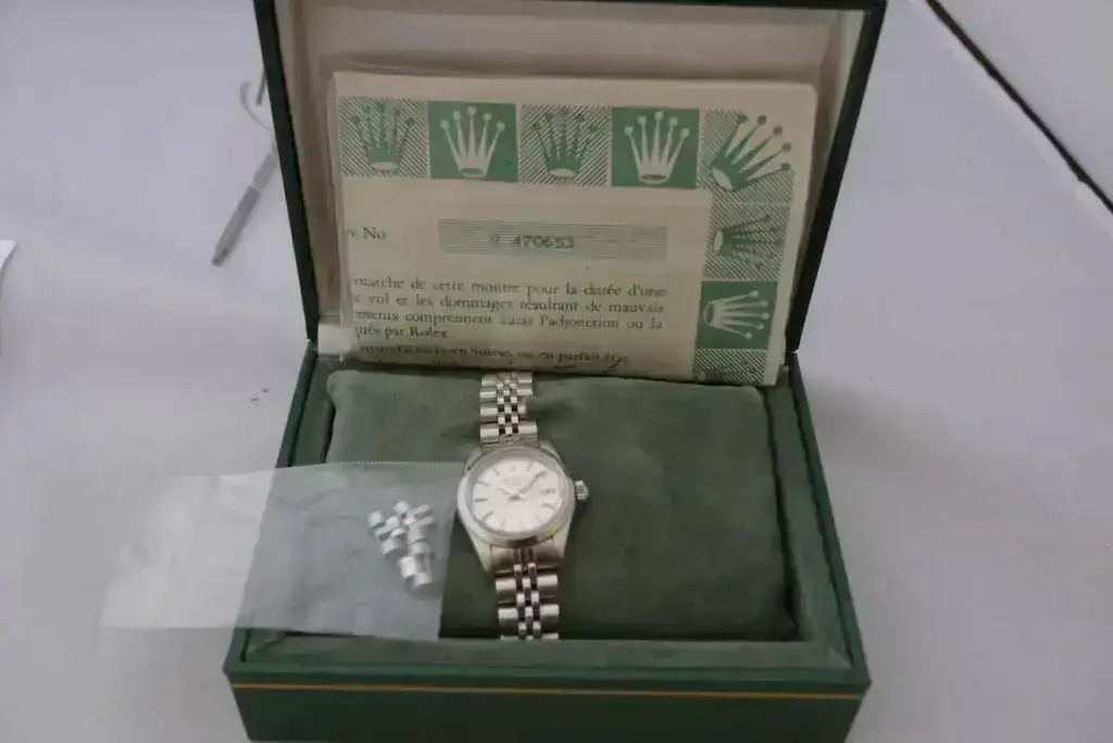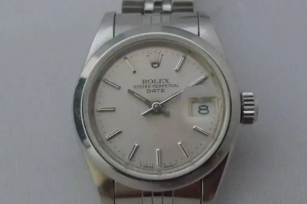 se trata de un rolex oyster perpetual date, con armis jubile, y cristal de zafiro.