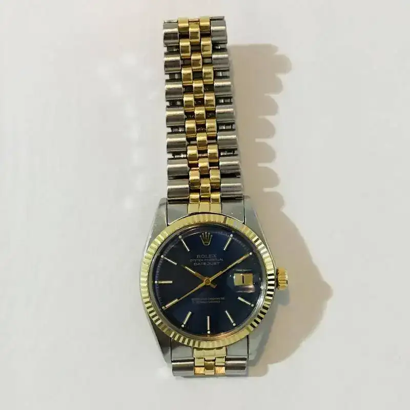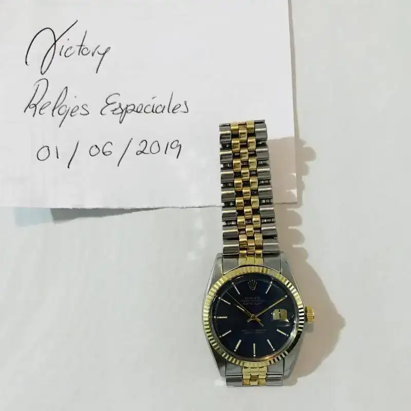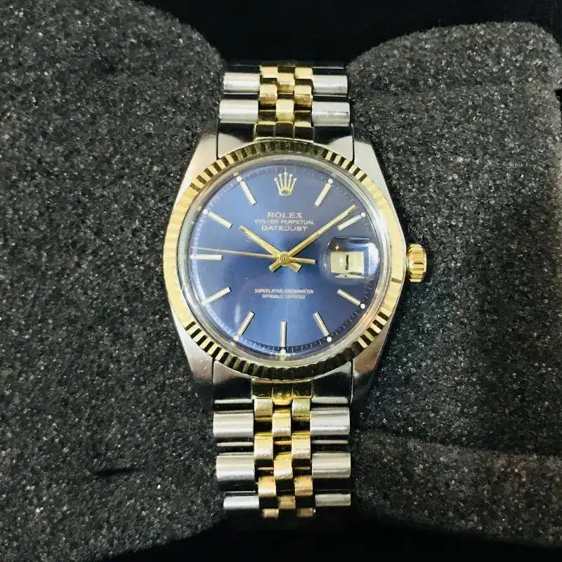 Hola, pongo en venta mi Rolex Oyster Perpetual DateJust Ref. 1601 en acero y oro con armis Jubilee y una bonita esfera azul, el reloj es de 1973 y se encuentra buen estado, su marcha es (+ /- 4 -10 seg).