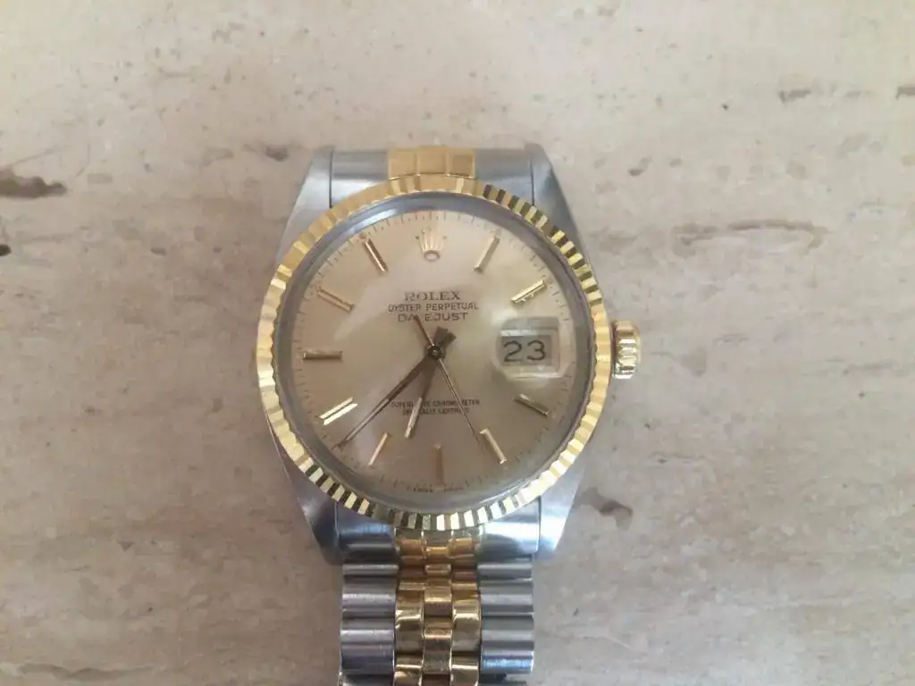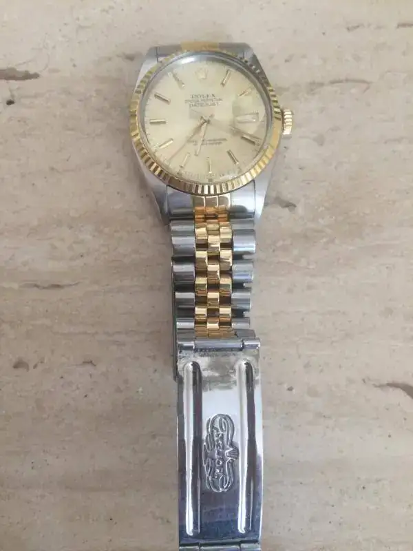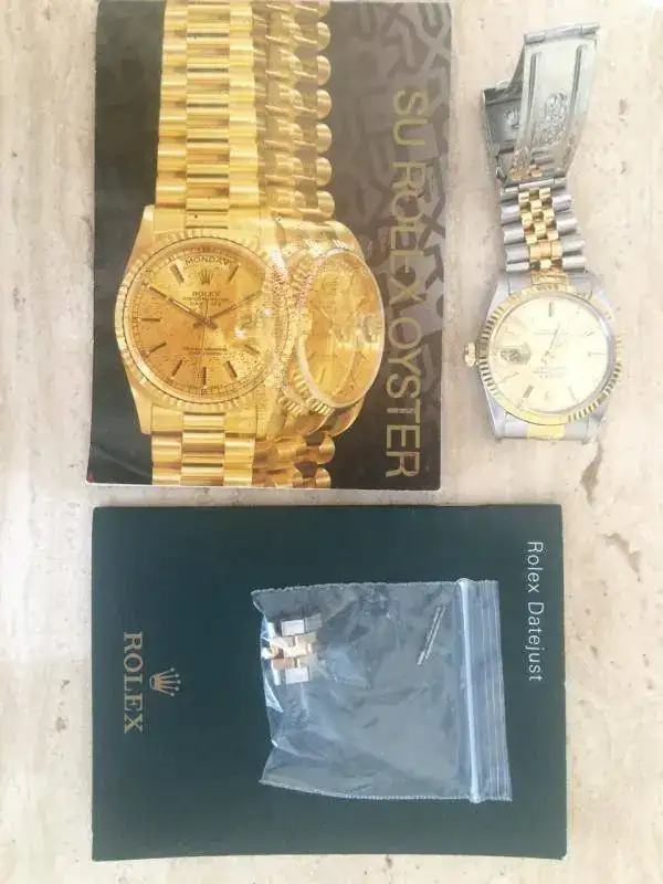 Os describo a continuación el clásico intemporal de Rolex que pongo a la venta. Es un Oyster datejust, modelo 16013 y por el numero de serie, que comienza por 900XXX es del año 1986. Monta el movimiento 3035. Es el modelo de acero-oro, con armis jubileé que a mi juicio se encuentra en un magnífico estado. Presenta ligerísimos arañazos en el cierre propios del uso y de su antigüedad. En cuanto a la caja está francamente bien y sólo tiene una raya en el plexi entre las 6 y las 7 (se ve en las fotos), solucionable con un pulido, pero que prefiero dejarla para que se compruebe el estado real del reloj. El reloj ha pasado una revisión en los últimos años, pero no puedo acreditar donde la pasó, ni la fecha ni tengo documentación de ello. Pero presenta un estado de marcha de primera. Tiene los eslabones sobrantes, pero no tiene ni caja ni documentación, sólo los manuales y el pequeño catálogo que se adjuntaban con el mismo. Para cambios podría aceptar algo de una valor no superior a 500-600 €. Se estudiarán todas las ofertas. Podéis ver mis bonus, por lo que ofrezco y pido seriedad. Gracias por mirar y cualquier duda, un privado. Siempre respondo.