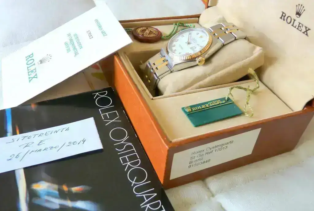 Vendo Rolex Oysterquarzt Ref. 17013, en acero y oro de 18k, cristal de zafiro, en un estado de reestreno, realmente parece comprado ayer en el distribuidor Rolex, apenas ha sido usado, se vende con el set completo, caja, folleto, sellos, documentacion, es un pedazo de la historia de Rolex que se dejó de fabricar en el 2001 y del cual se hicieron sólo 25.000 unidades. Un reloj realmente hermoso y que como dije está nuevo. Para contactar por Whasap, móvil o privado.