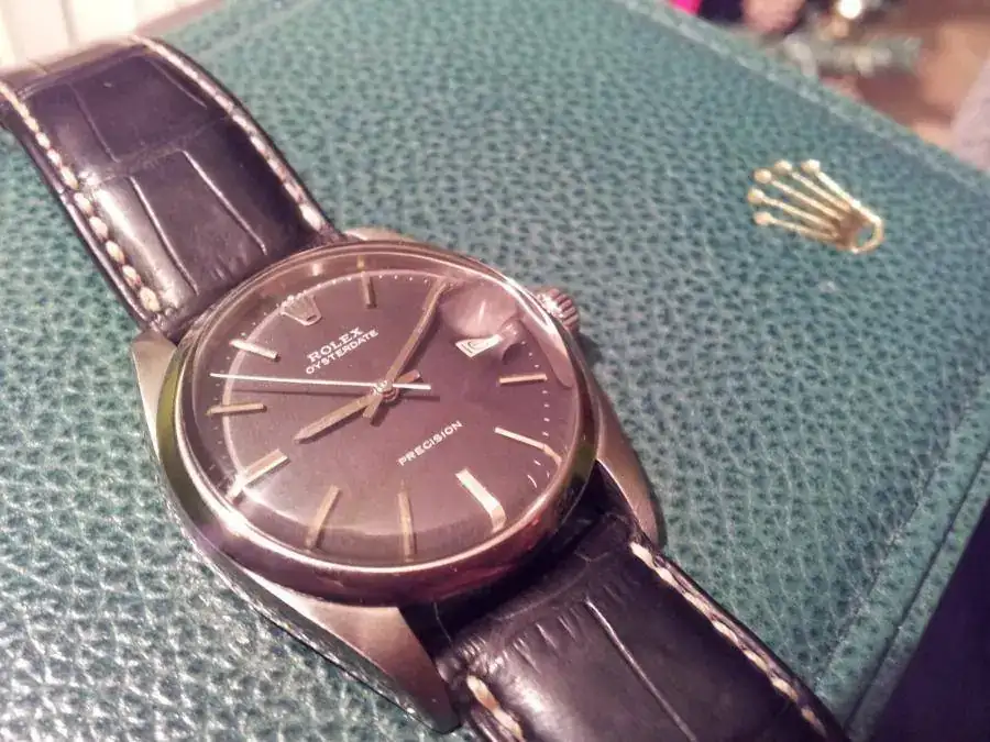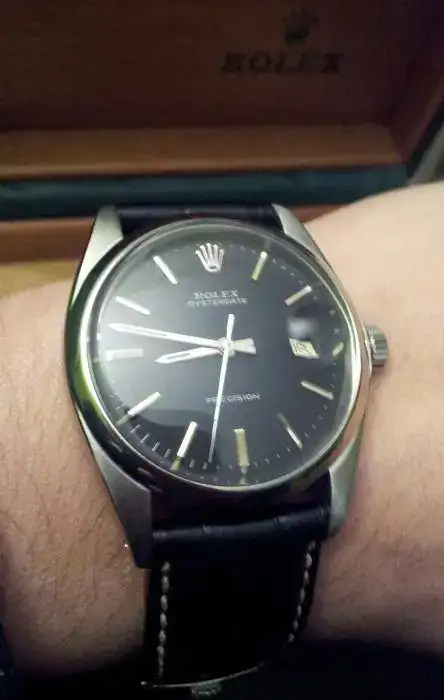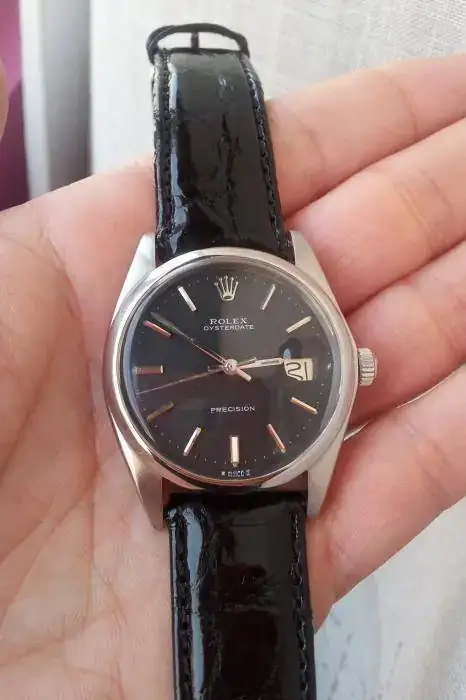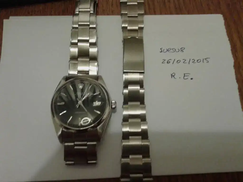 Vendo fantástico Rolex Oysterdate Precisión muy cuidado y con una muy buena marcha, comprado a reputado mercante de este foro en diciembre de 2013. Es un reloj del año 72, un maravilloso vintage muy cuidado y en muy buen estado. Lo adquirí con una correa muy deteriorada y le puse otra un tiempo y después le compré un armis vintage, también en este foro. No sé para qué medida de muñeca da, no tengo más eslabones, pero si tienes muñeca grande tendrías que ponerle alguno casi seguro. Con piel queda elegantísimo también, se ve en las fotos, casi más bonito que con armis, pero me hacía ilusión que tuviese armis para variar. Adjunto otro armis clavadito al original ( no es fake, no hay marca ni coronita por ningún lado, parece un "homenaje", simplemente lo compré por si lo quería cambiar para conservar el otro o por si necesitaba algún eslabón en el futuro). Por ello , le dejo un precio muy muy bueno, de 1000 Euros vamos, que regalo los dos armis.