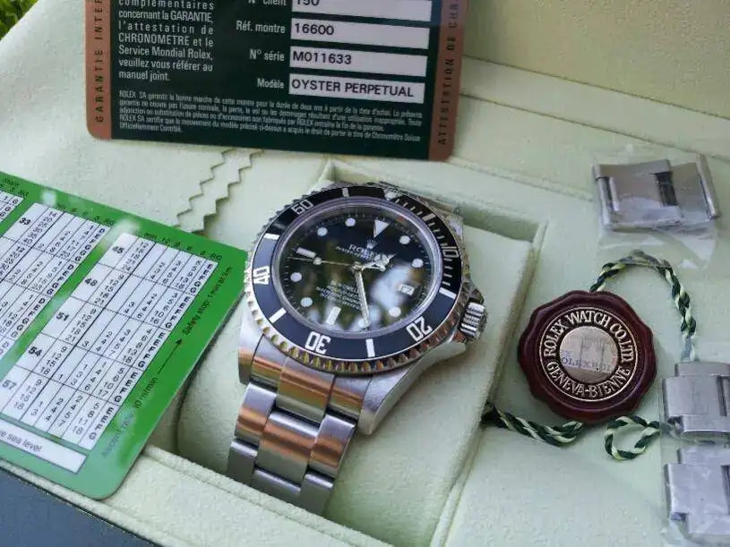 No creo que haga falta decir nada de este modelo, sólo que es de la última serie de Seadweller que salieron al mercado, por eso es tan buscado. El reloj está en perfecto estado, Serie M de finales de 2008, ligeros pelillos (no ha sido pulido