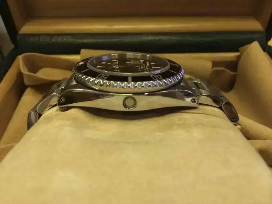 El reloj está en buen estado 7/10 diría yo. Tiene los signos absolutamente normales de uso. Yo lo compré en Alemania en 2006, y aunque no tiene documentación, sí que tengo un documento expedido por Rolex Alemania que verifica su autenticidad. Incluye caja exterior de cartón, e interior de madera y piel, así como la almohadilla interior.