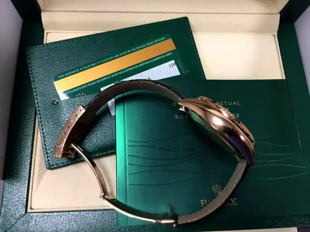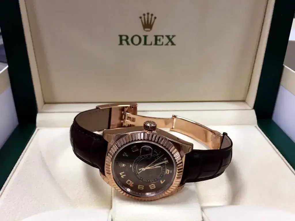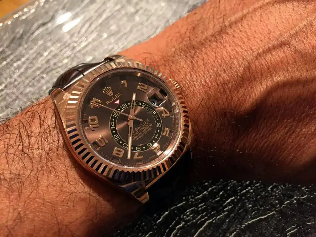 pongo a la venta una pieza muy poco vista por aquí, tanto en el FCv como en el foro en general. Se trata del Rolex Sky-Dweller de oro rosa (Everose, para ser preciso). Comprado en concesionario español, su estado es de reestreno en tanto tiene poco más de un mes y se ha usado en contadísimas ocasiones. De hecho, conserva prácticamente todos sus plásticos protectores.