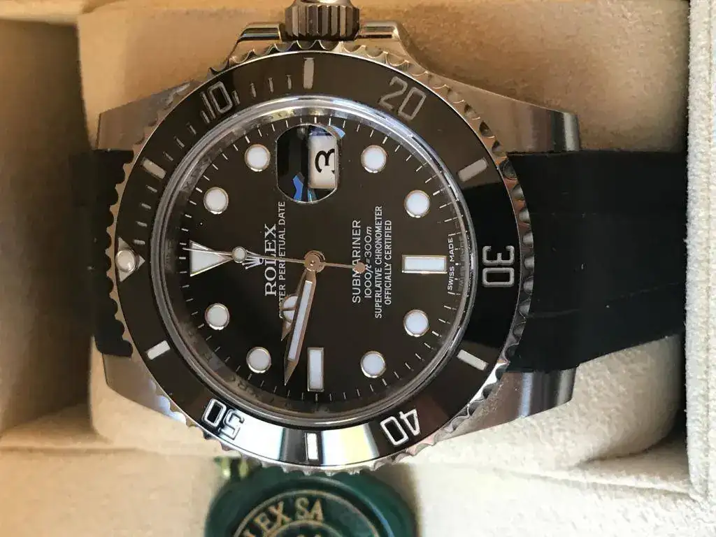 Buenoa días, por temas no relojiles, pongo en venta mi sub. cerámico en estado de reestreno puesto que se ha sido usado en contadas ocasiones , actualmenta monta un caucho Rubber B cuyo pvp es de 240 € y que entra en la dotación del precio final. Tiene garantia has abril 2020