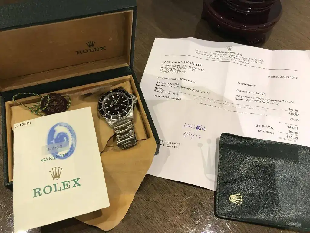 Vendo Rolex Submariner no date ref: 14060 dos lineas tritio en perfecto estado completo de caja y documentación y recién revisado en concesionario oficial Rolex con dos de años de garantía oficial y con factura de 534€, comprado en 1995 no tiene holgura esta como nuevo.
