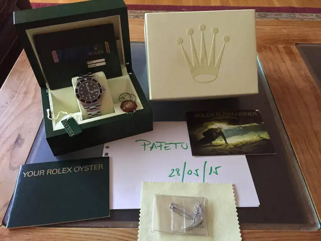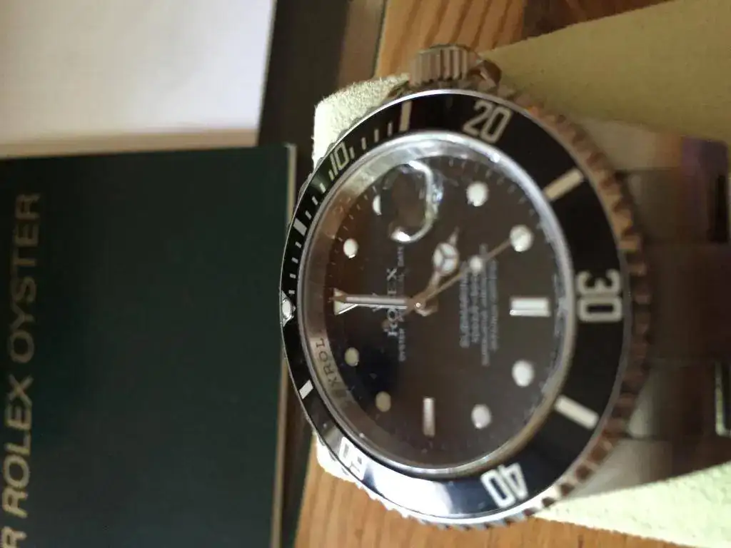 Buenas noches a todos.Pongo a la ventas Submariner Date 16610 nunca ha sido pulido, con un uso muy moderado, las marcas que tiene son superficiales, del típico uso y roce. El reloj fue comprado en Mayo de 2009, Serie V. Esta en perfecto estado de conservación y el armis no tiene ningún tipo de holgura.