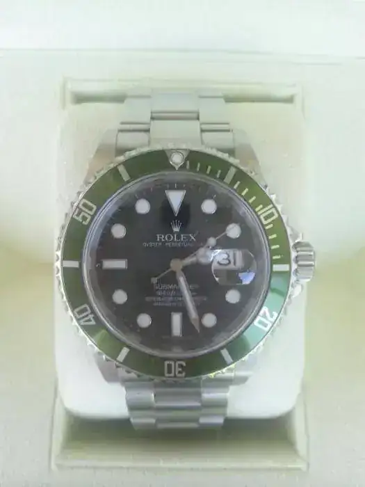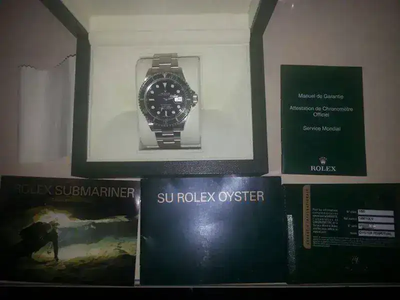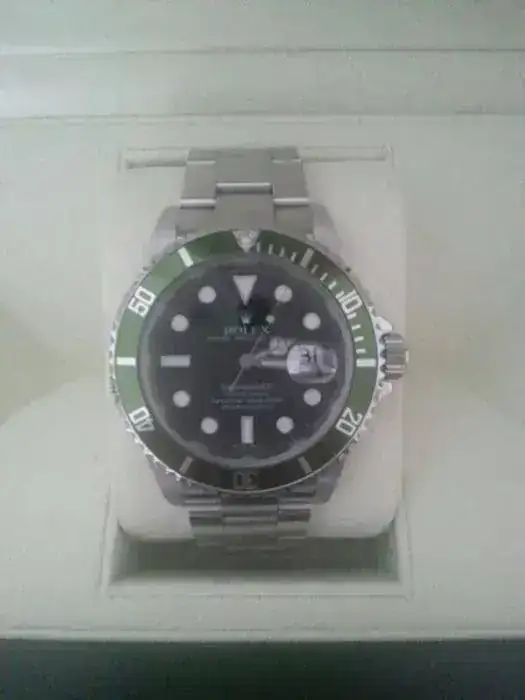Tiene el set Completo del año 2010, incluye caja exterior de cartón verde, caja interior de piel verde, libro de Rolex, libro de Submariner y tarjeta de documentación original sellada.