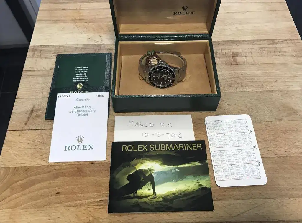 Hola a todos , con mucha pena y por causas de caza mayor pongo a la venta este estupendo Submariner 16610 en un estado realmente bueno. El estado del reloj yo diría que para los años que tiene es de 8,5/10 , tiene 12 años y no ha sido pulido nunca. Es un serie F sin agujeros en la caja y con el flat four en el insert. Casi no tiene holgura en su armis y esta con el set completo a falta de la caja exterior de cartón. Tiene marcas de uso normales para un reloj con 12 años , pero nada importante EMHO. De todas formas estaré más que encantado de enviaros toda la info y las fotos que me pidáis.