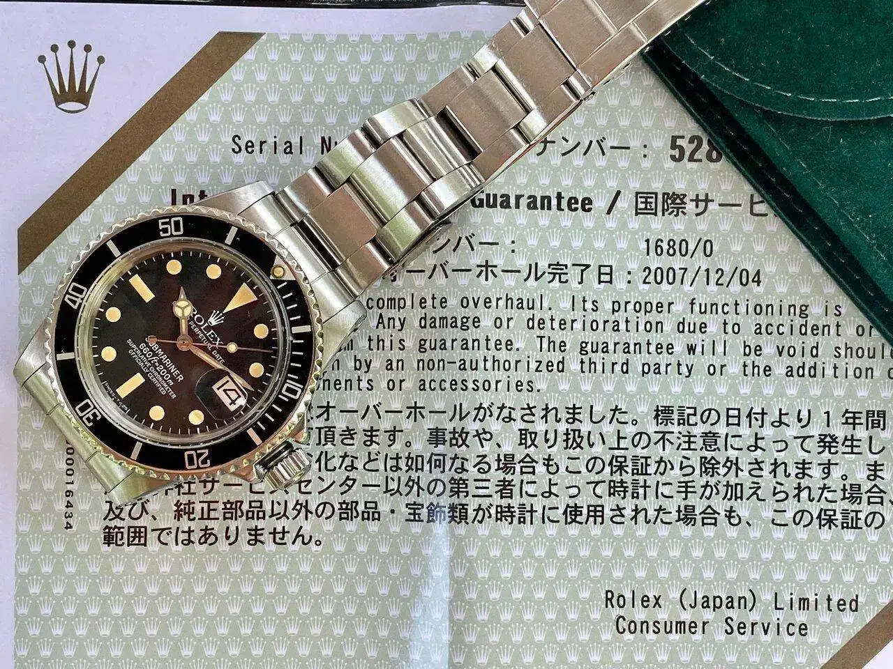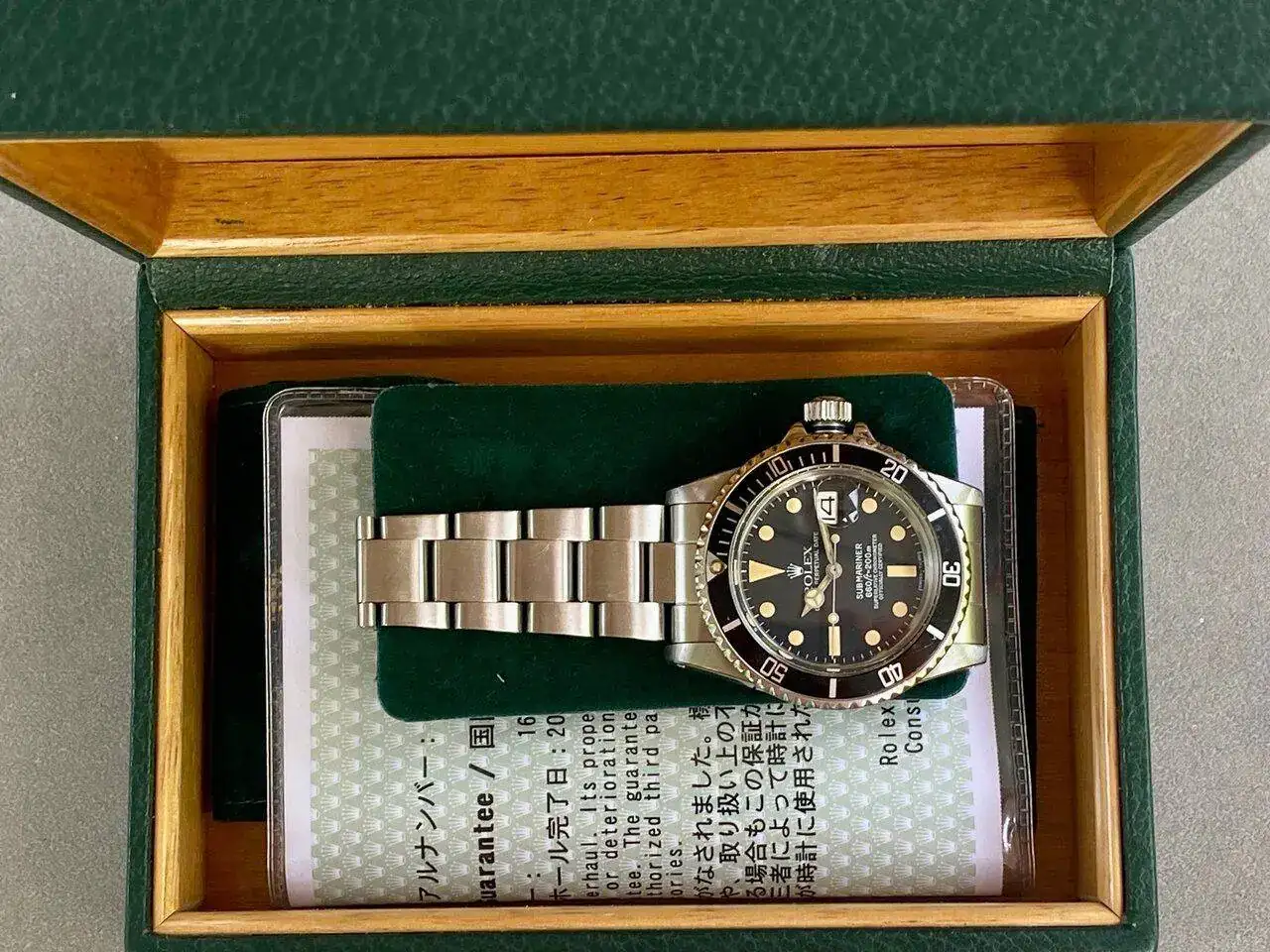 Vendo este Rolex Submariner 1680 Mark2 Thick font de 1977 con caja y papeles de revisión Rolex Japon de 2007).