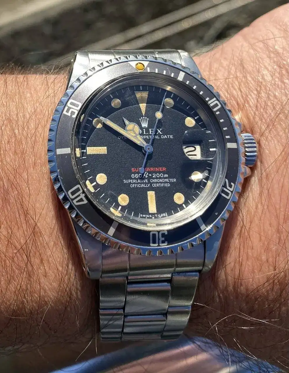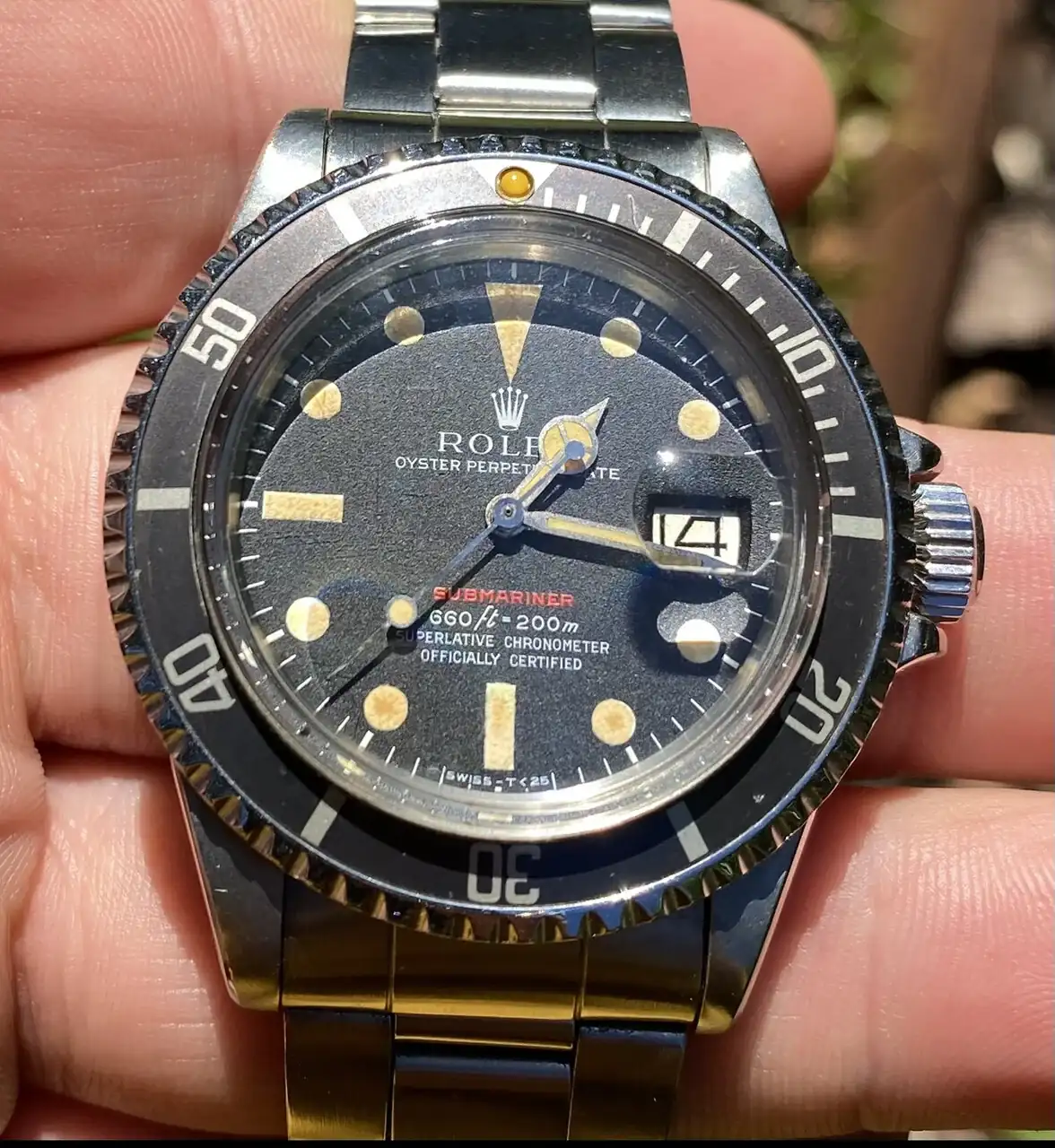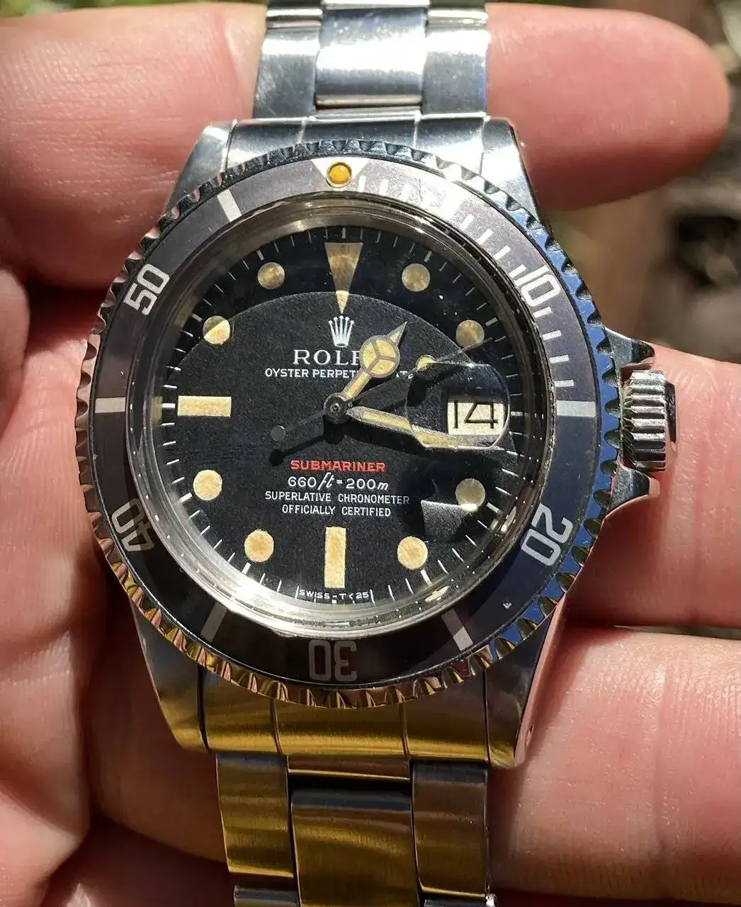 Se trata de mi Submariner RED MKIV. Un reloj del año 70, el cual conserva absolutamente todas sus piezas originales desde su año de compra.