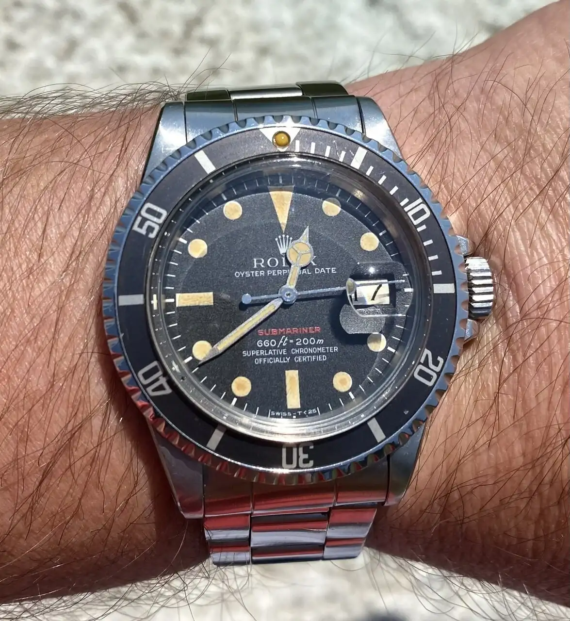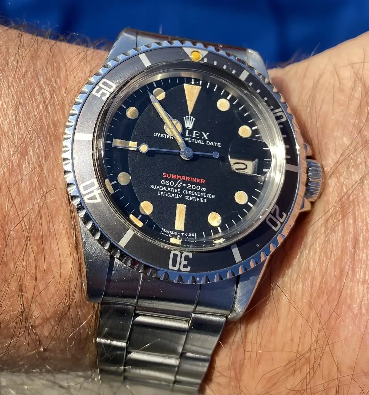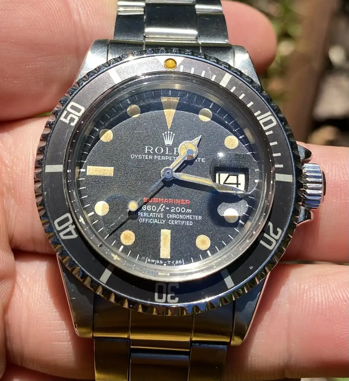 Se trata de mi Submariner RED MKIV. Un reloj del año 70, el cual conserva absolutamente todas sus piezas originales desde su año de compra.