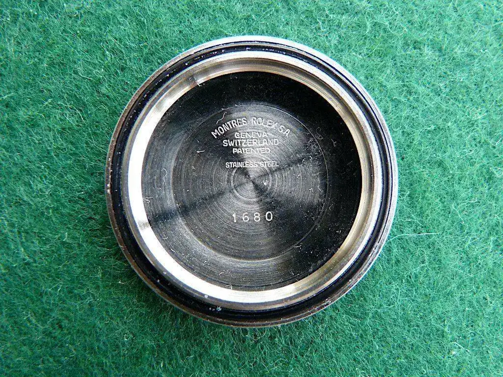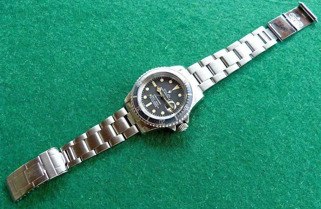 El bisel tiene algo de desgaste y el insert un bonito color azul-grisáceo de envejecimiento natural. Tapa de origen, corona y cristal plexi de servicio.