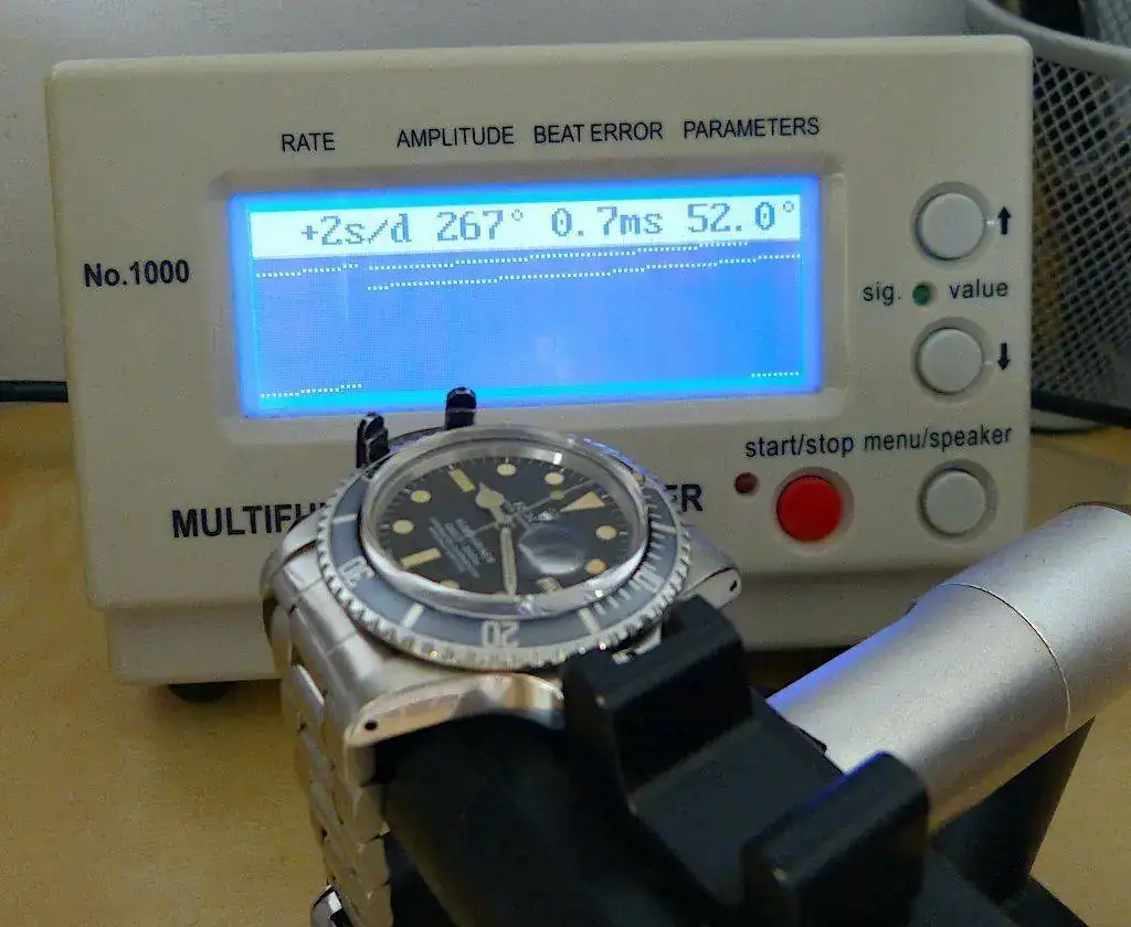 Reloj en muy buen estado, con marcas de uso y que probablemente ha sido pulido en el pasado, aun así la caja conserva sus formas sin presentar desperfectos o redondeos, las patas están aun gorditas y con sus aristas bastante vivas. Serial (5.216.xxx) y referencia perfectamente legibles.