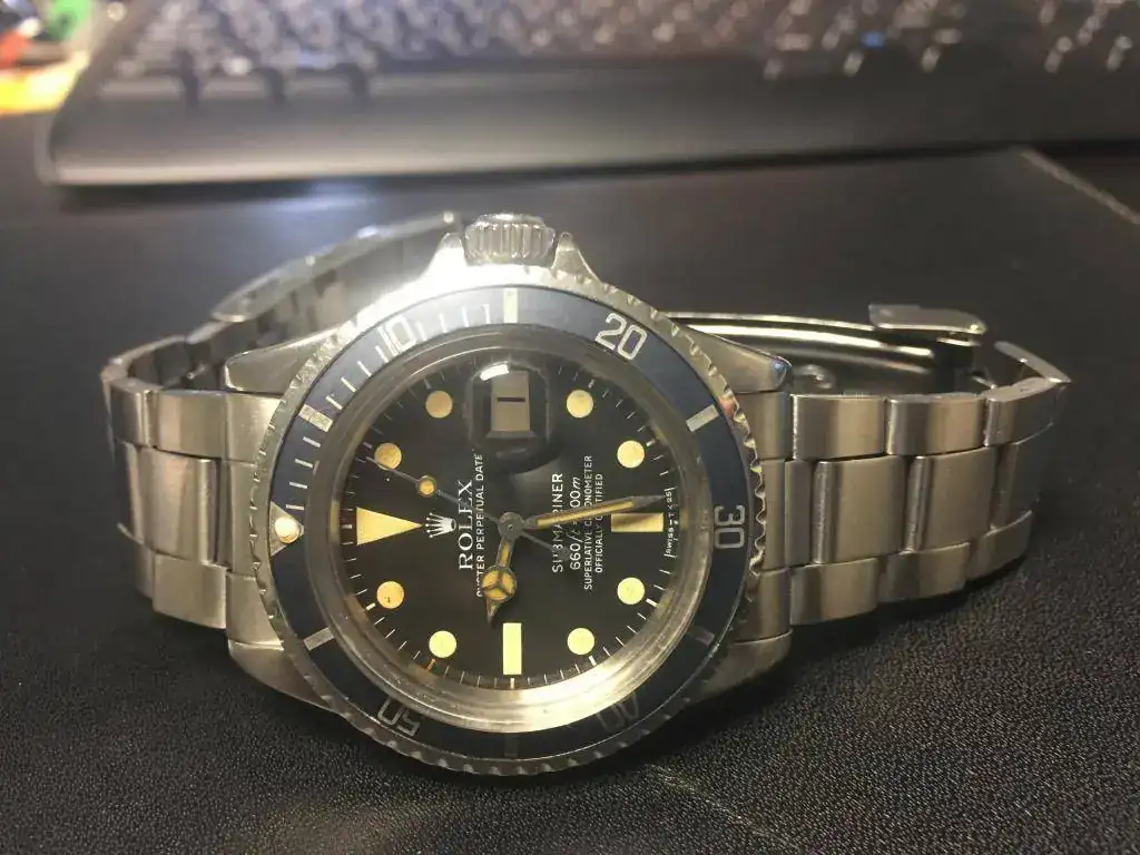 Esfera con preciosa patina de tritio al igual que las agujas. Bonito bisel degradado.