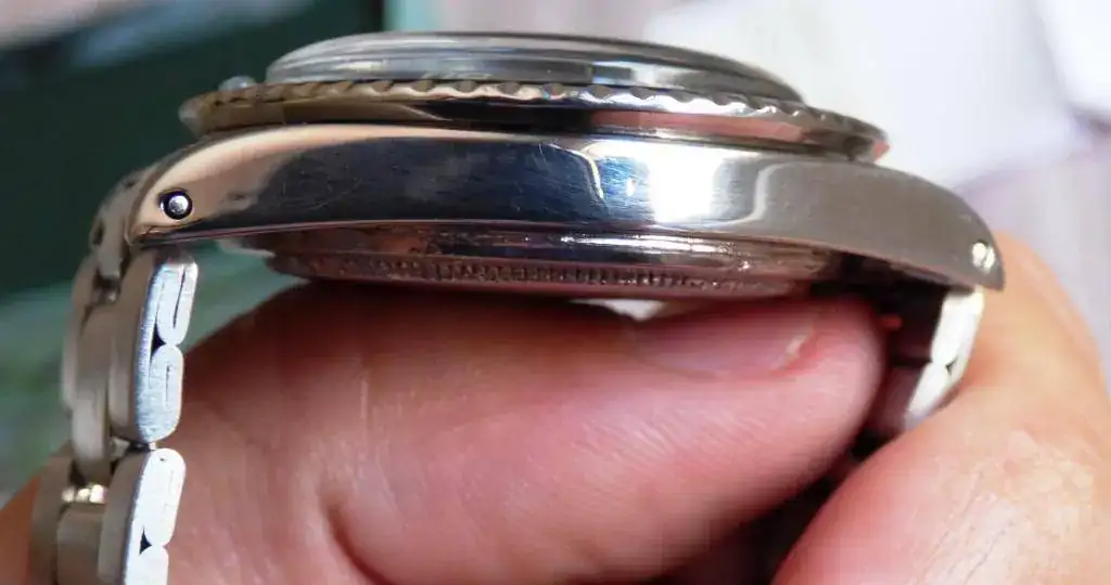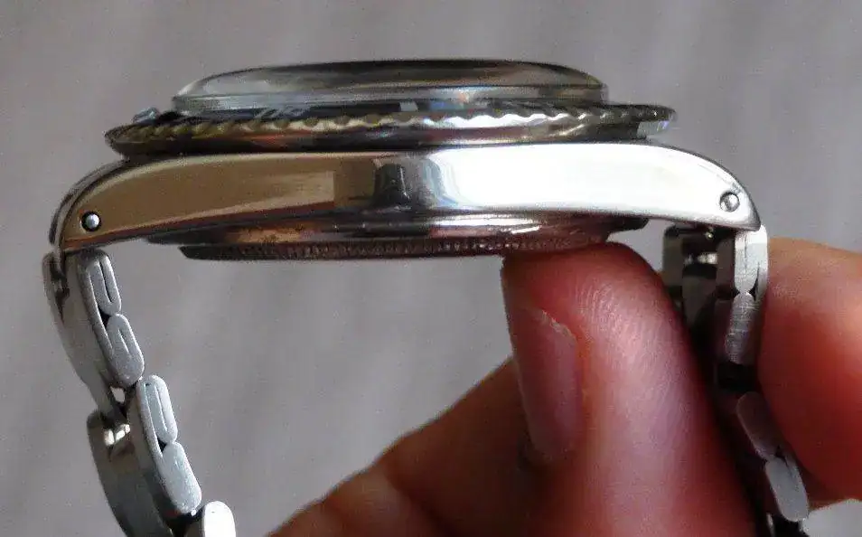 El reloj funciona perfectamente (fue revisado en 2013), y está en un estado muy bueno. Os hago una descripción del mismo y mirar por favor con detenimiento las fotos, como parte de la descripción. El reloj es todo original y de la época, salvo la perla del bisel, que es de luminova, y no de tritio. El armis que lleva es el que le corresponde, el 9315, que presenta algo de holgura, pero se puede llevar sin problemas. Destacar que la corona del cierre está un poco pulida. La tapa trasera presenta marcas de haber intentado abrirla con la herramienta que no toca, pero adjunto una nueva (de la época). También adjunto un plexy nuevo, y alguna pieza que le cambiaron en la última revisión.