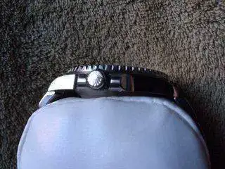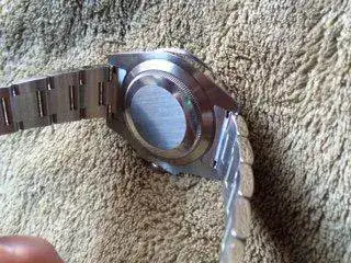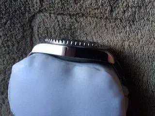 El reloj está practicamente inmaculado , sin roces de uso ni nada por el estilo , lo único a reseñar es una minúscula marca que me ha costado varias fotos reflejar y que sólo se ve desde cierto ángulo y con la luz adecuada , pero el caso es que está , apostaría a que vino con ella , pero vamos , el caso es que está ahí .