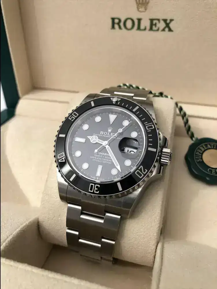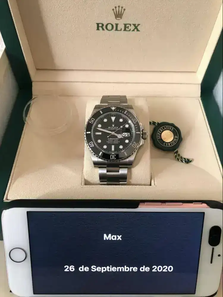 El reloj está sin estrenar, lo compré hace un par de semanas en Chrono24, a un comerciante español con buena reputación en dicha web -17 Jewels Watches- del que adjunto la factura de venta, y el Trusted Checkout de Chrono24 (el precio que yo pagué de compra fue de 15.500€, cualquier interesado que no dude en pedirme la factura para que pueda verla), lo compré con mucha ilusión porque el Submariner siempre había sido mi máximo grial, amo especialmente los relojes de buceo y el Submariner siempre había sido el reloj de mis sueños desde bien pequeño, así que una mala noticia familiar me animó a dar el salto comprarme uno nuevo, como vi que en mi caso me fue imposible adquirir uno en los DO, busqué un vendedor de confianza, y con la seguridad del comprador de Chrono24 di el paso, el otro requisito era que se tratara de una unidad a estrenar, fue una gran alegría verlo por primera vez, las fotos no le hacen justicia (siento la baja calidad, son de mi móvil), pero al probármelo me di cuenta que mi sueño era el modelo antiguo, el 16610, lo mío son los biseles de aluminio, me lo he probado solo en 3 ocasiones para ver sensaciones y no ha pasado de ese punto, acto seguido siempre ha vuelto a la caja y no le dado uso, así que lo saco a la venta por si algún compañero puede disfrutarlo.