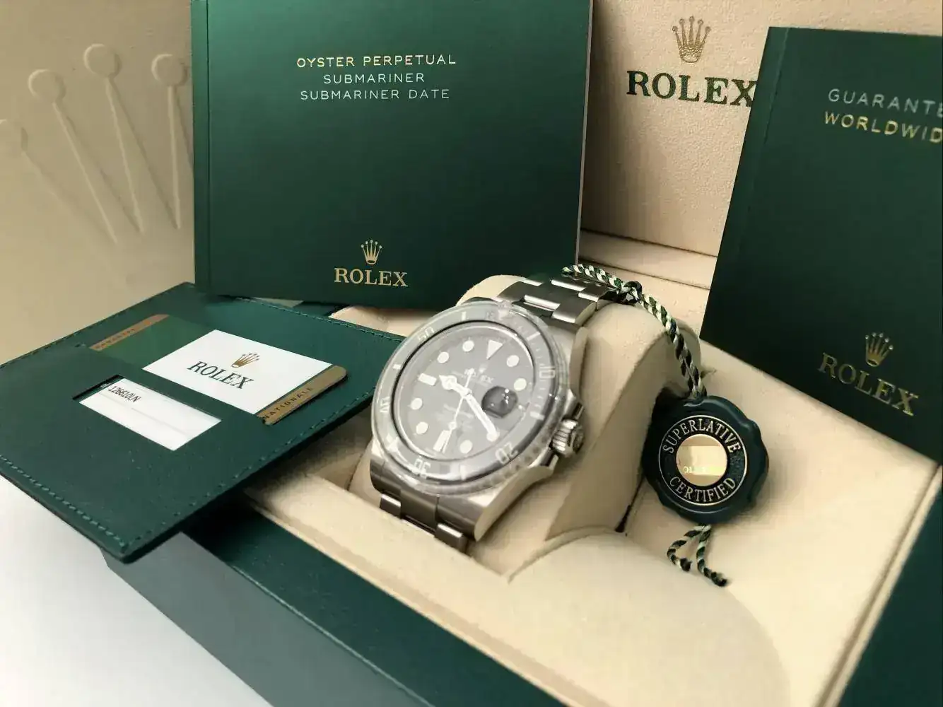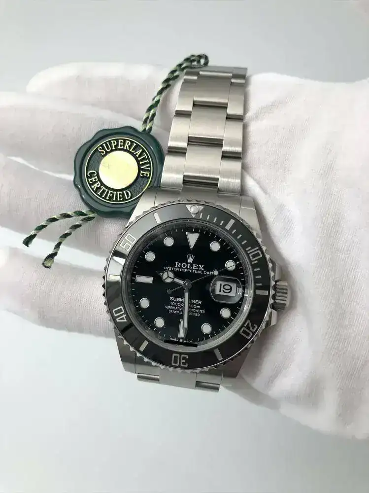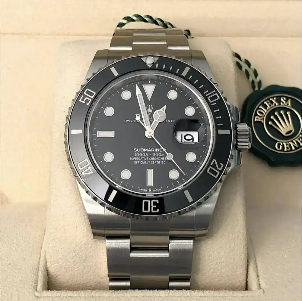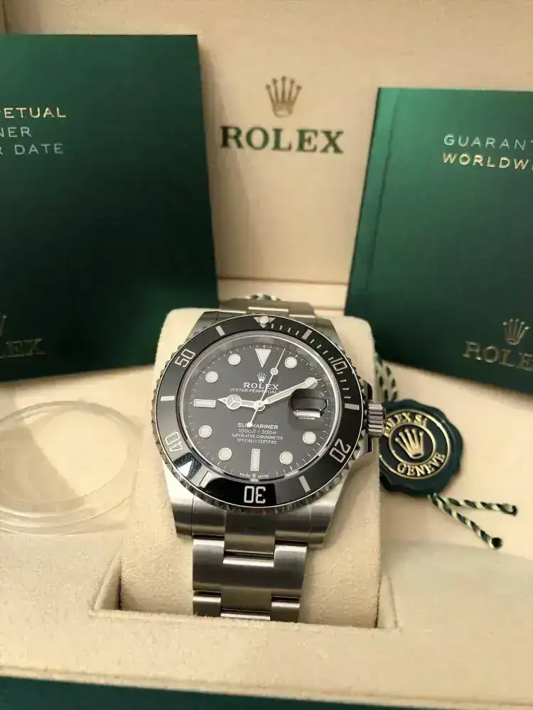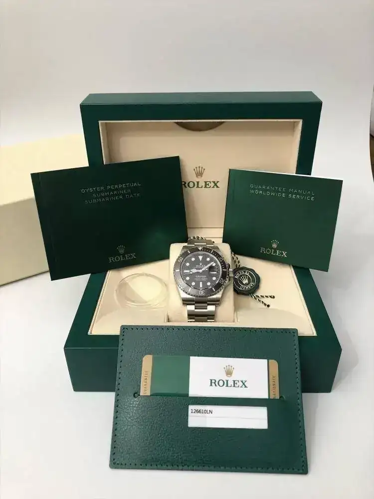 pongo a la venta este Rolex Submariner Date 126610LN, el nuevo modelo del 2020, presentado el 1 de este mes por Rolex, está totalmente para estrenar, con el nuevo calibre 3235 (de 70 horas de reserva), tiene la dotación original de fábrica completa: las dos cajas de Rolex, y el cartón exterior que las cubre, la documentación completa, compuesta del libro de funcionamiento del reloj, libro sobre la garantía Rolex de 5 años, funda de cuero guarda tarjeta de la identificación del reloj y garantía del mismo, también incluye: el protector del bisel, el sello lacrado de Rolex con holograma, las pegatinas de la tapa trasera de la caja, y las pegatinas del cierre del brazalete y la pegatina naranja del eslabón extensible, tal cual está con todo lo que se ve en las fotos es como se entrega el reloj (que ahora mismo ha quedado guardado en la caja y no vuelve a salir hasta que lo tenga su futuro propietario).