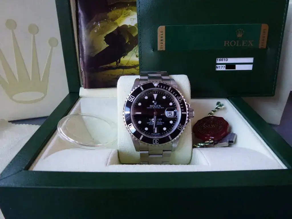 Saco a la venta submariner date serie random de finales del año 2010, nacional y con set completo (documentación, cajas, libritos, cartera, eslabones y lacre). Ultima serie de submariner 16610 con aro de seguridad.