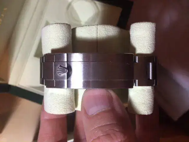 Viene con todo su set de cajas, tarjetas, manual, protector de plástico del bisel, lacre, eslabones sobrantes... por lo que está todo completo.