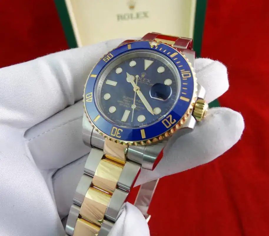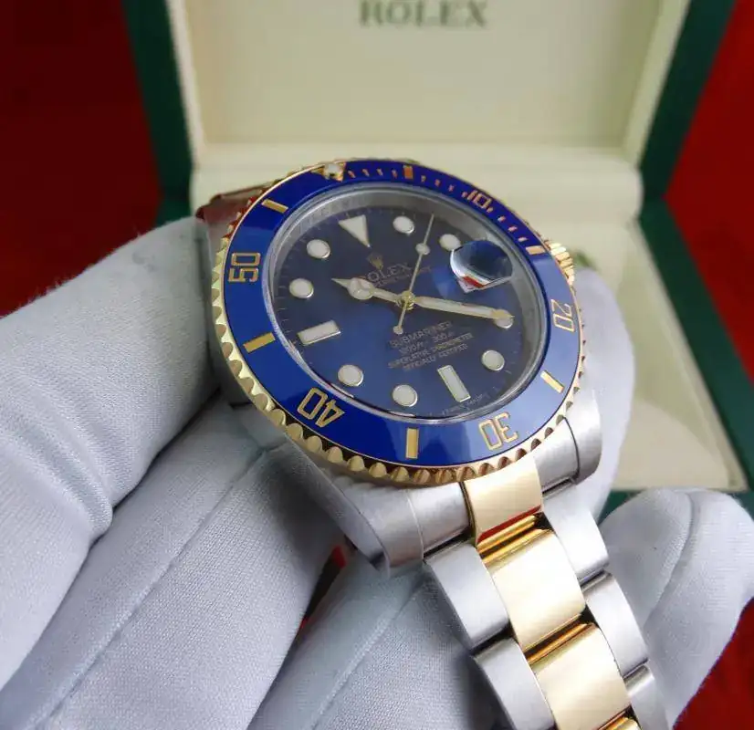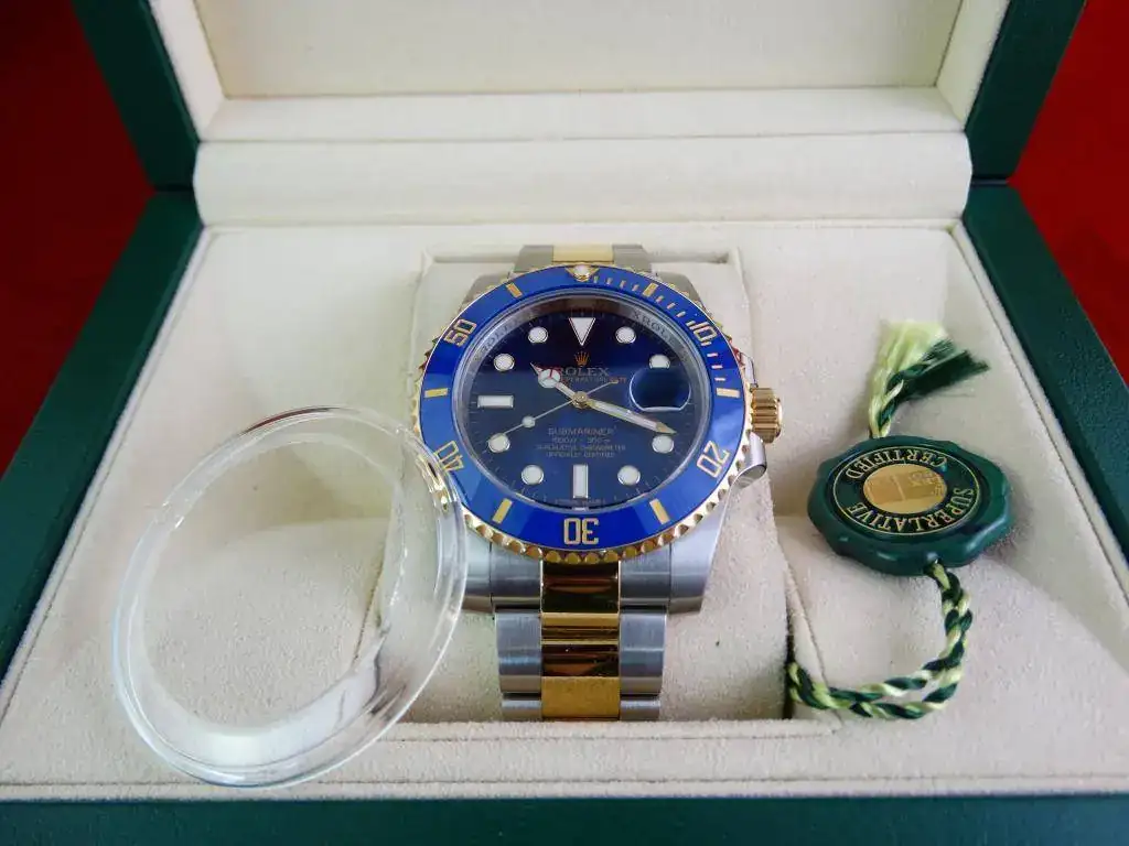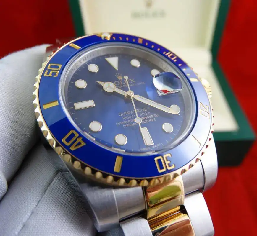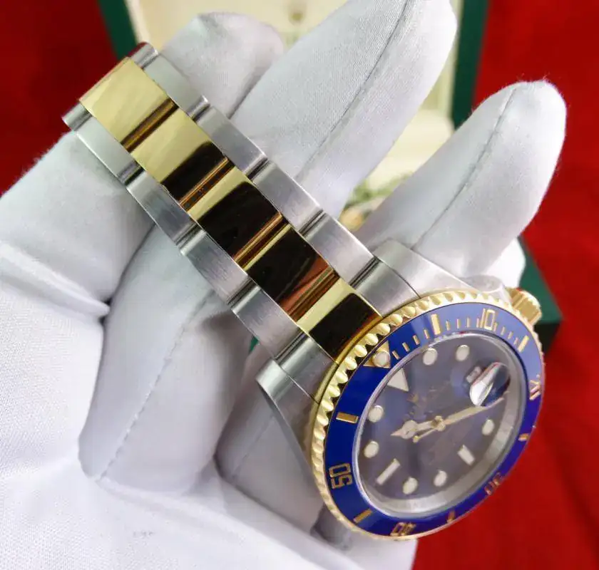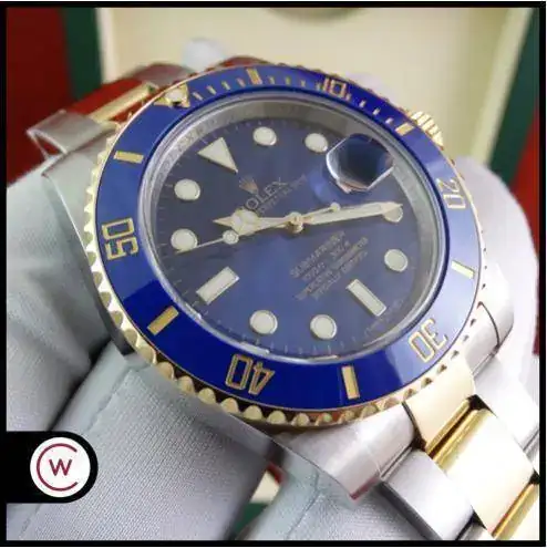 Hoy proponemos uno de esos relojes que nos quitan el sueño a muchos: el ROLEX Submariner mixto, acero y oro, en azul, en este caso, en su versión más reciente con la nueva caja, brazalete y cierre, bisel cerámico. Se trata por tanto de la referencia 116613LB, un reloj contundente en la muñeca, como cualquier Submariner Cerámico, pero que además aporta un plus de elegancia gracias al oro, y el precioso azul. Mención especial para la esfera, que ofrece un color cambiante de azul muy oscuro e intenso, a azul claro, en función de la luz.