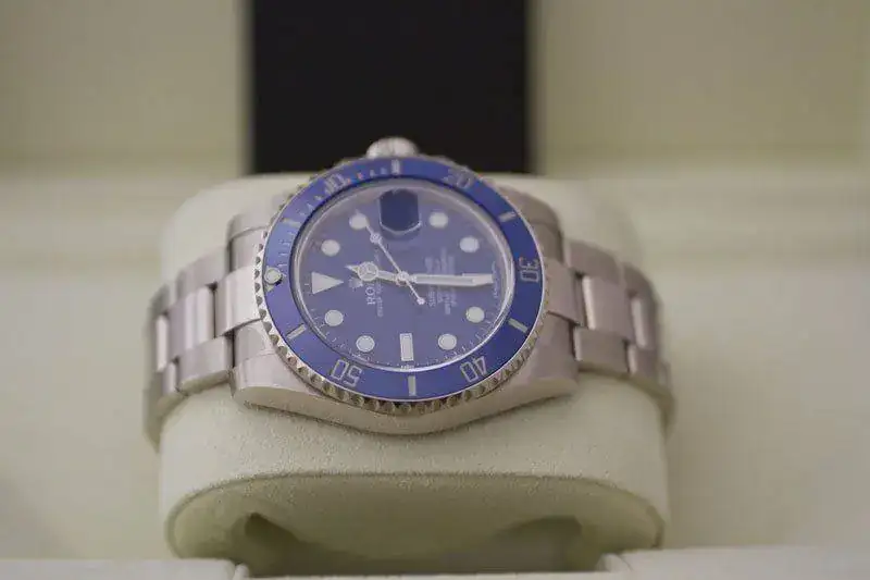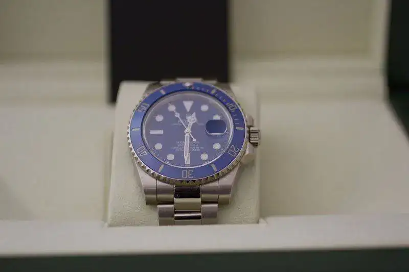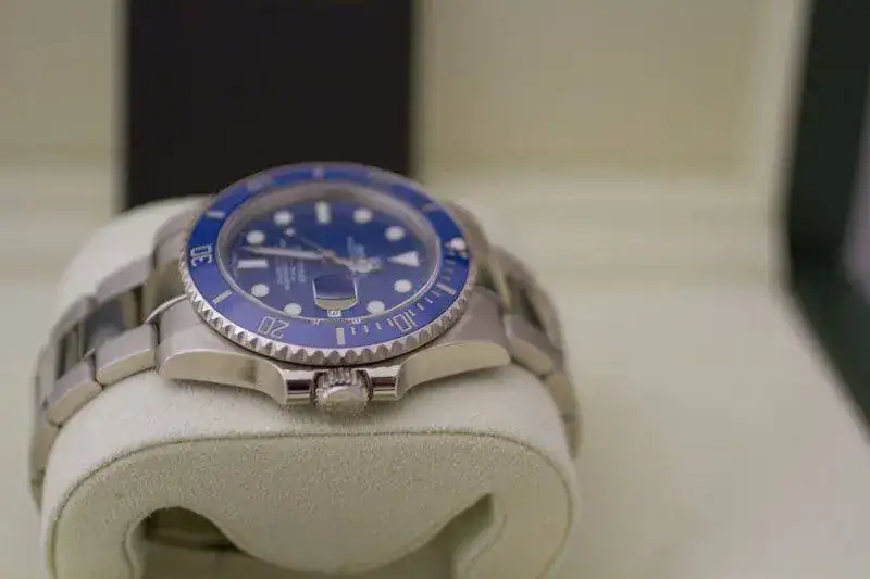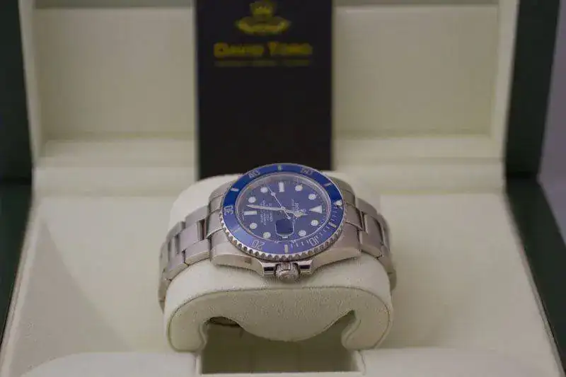 - Esfera azul con índices y agujas tratados con material luminiscente Chromalight.