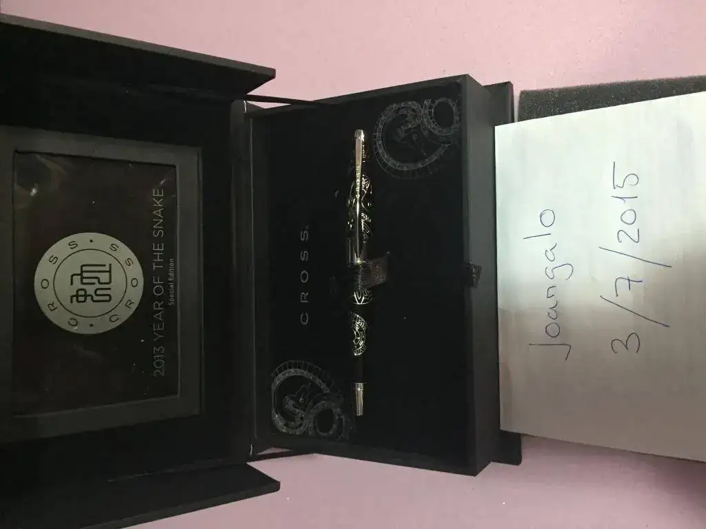 Pues eso vendo esta edición especial de roller de Cross en su caja con todos sus respectivos papeles y caja negra exterior, esta nuevo a estrenar. Es la edicion especial Year of the Snake y a destacar la vistosidad y contundencia de la pieza asi como su belleza que no pasa desapercibida. El precio que le fijo es de 150€ y el envio aparte por el medio que elija el comprador. (Recomiendo el servicio de Kiala que cobran 5€)