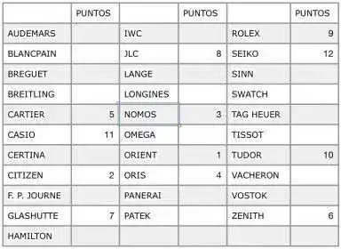 Te quito las 2 últimas (Orient y Citizen) y te muevo las otras porque son solo 10.: