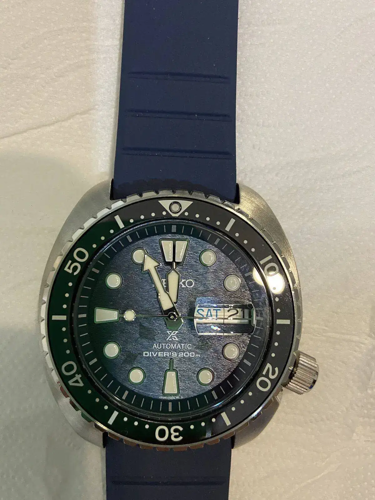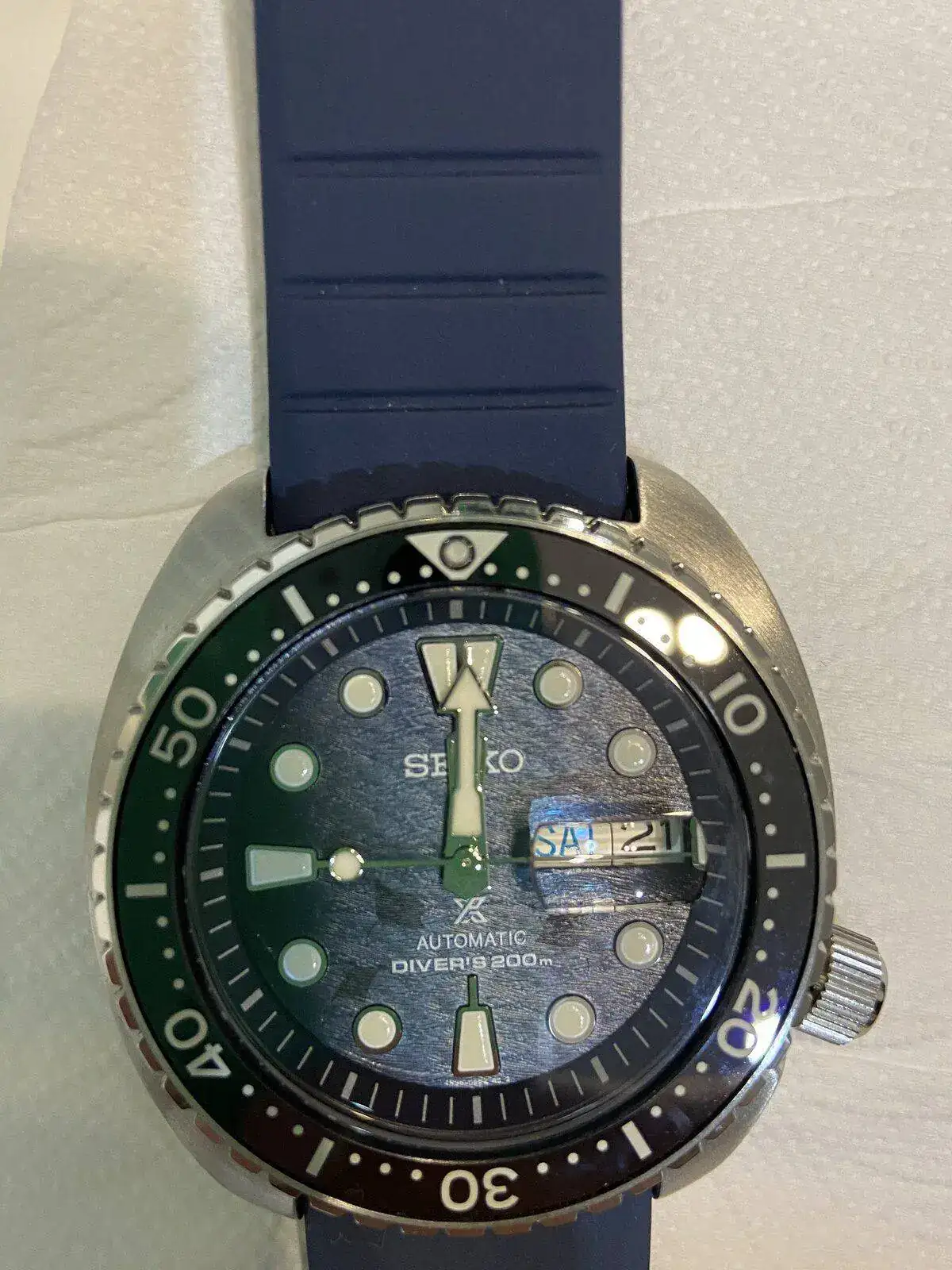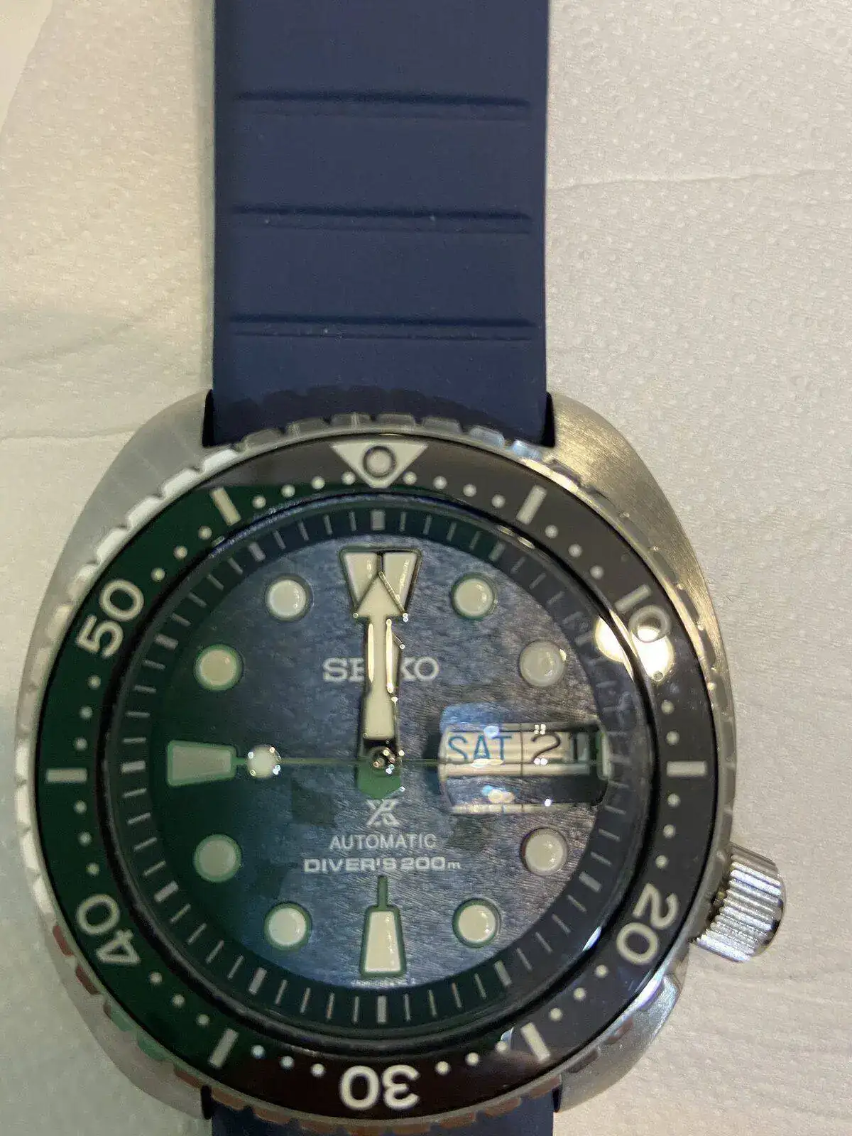 Buenas tardes. Tengo varios relojes automáticos. En todos ellos las vueltas de la rosca de la corona para cerrarlo son varias. Mis dudas son dos. A ver si me podéis ayudar. Mi mujer me ha regalado un seiko king turtle save the ocean el de este año. SRPF77K1 La primera es la corona, apenas tiene dos vueltas para cerrarse y va dura, lo que me parece extraño. Y la segunda algo he leído que el dial va un poco mal centrado. Que me decís? Gracias.