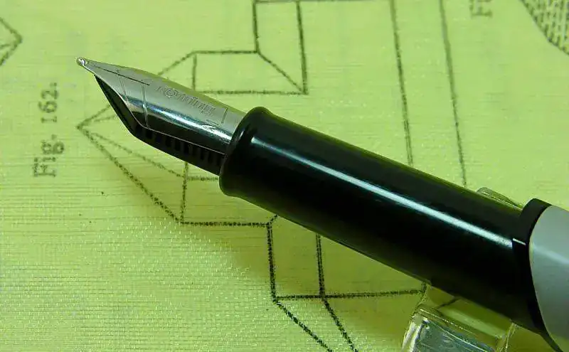 La pluma tiene un plumín de trazo medio, rígido (IR clase 5) y muy suave.
