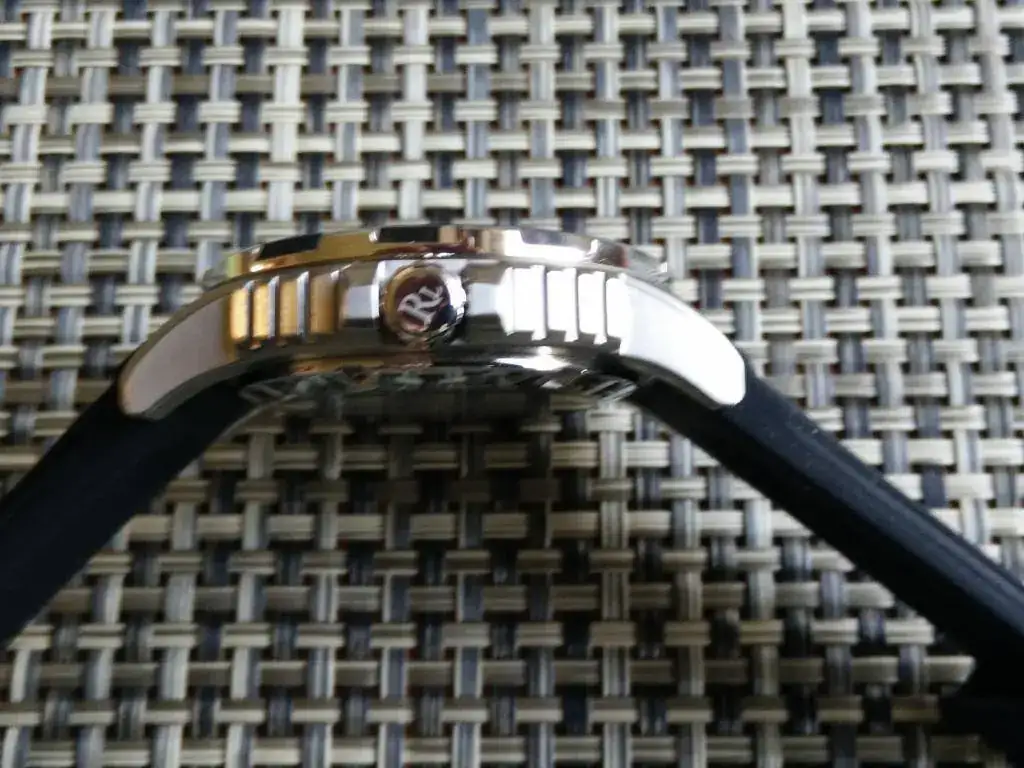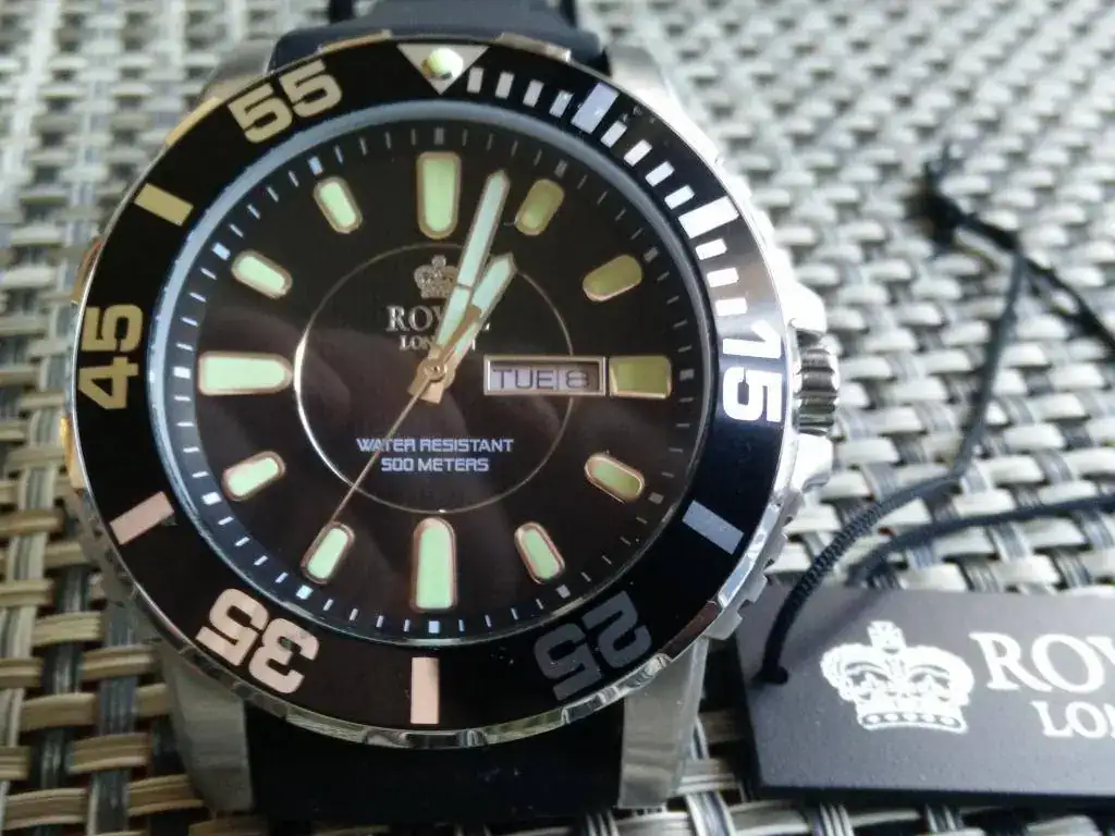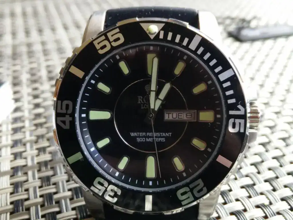 Es un reloj contundente para los que os gusten los relojes grandes. Caja de Acero, W.R. 500metros. Bisel Unidirecional 120 clicks.