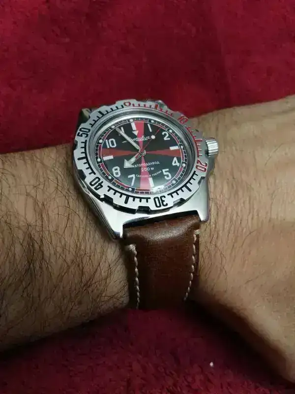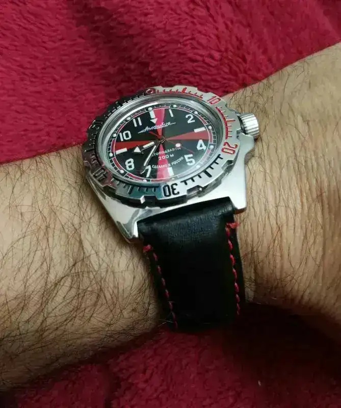 Pues me has dado una idea (bueno Pepe fue quien nos inspiró jajajaja), le cambié la correa por una de piel negra con pespuntes rojo, creo que le queda mejor que la marron. Pero tengo un armis por ahi que también podría ser una buena opción. Te dejo unas fotos del último cambio, que te parece?...Ver el archivos adjunto 640701, Ver el archivos adjunto 640702.