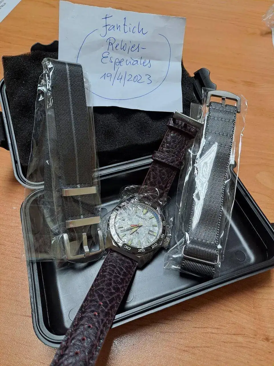 Nuevo sin estrenar. Se incluye toda la dotación compuesta por estuche, reloj y dos correas natos.