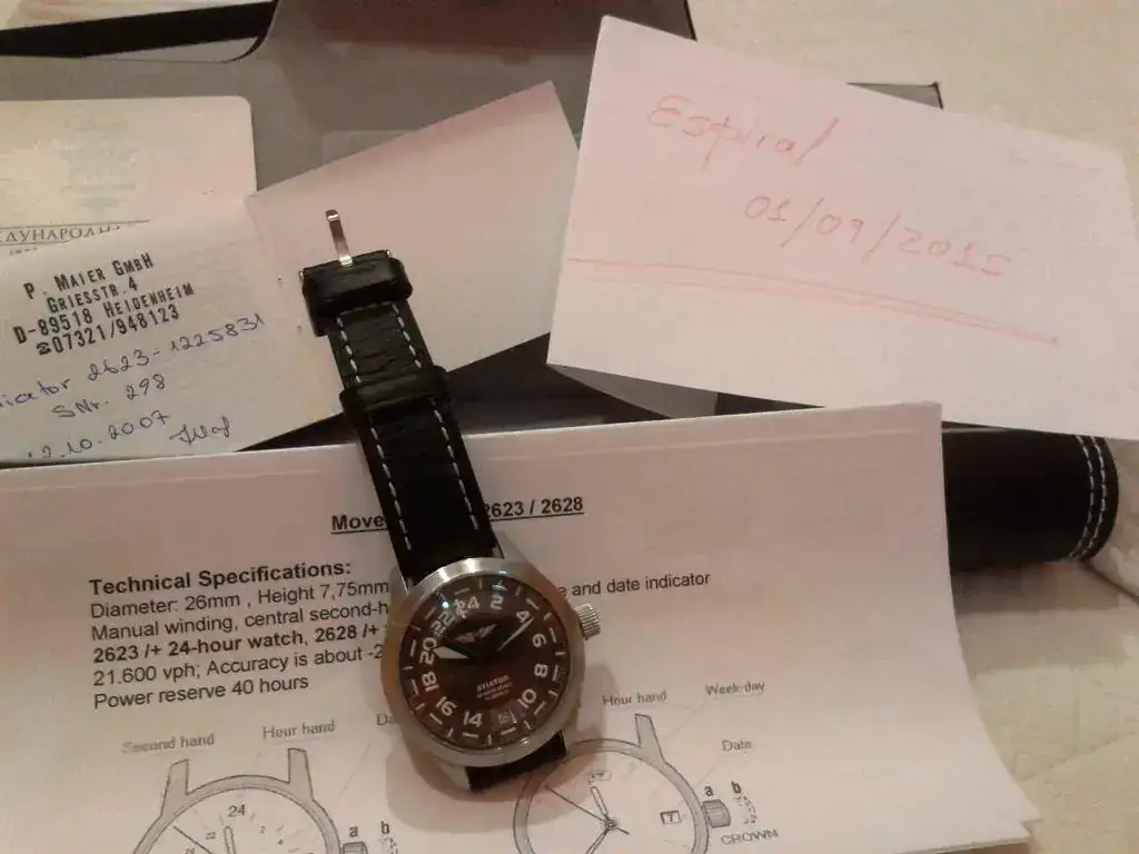 Con el fin de seguir haciendo caja saco también a la venta este Volmax Aviator 24 horas, ref 2623-1225831, prácticamente sin uso, que monta un movimiento poljot 2623.
