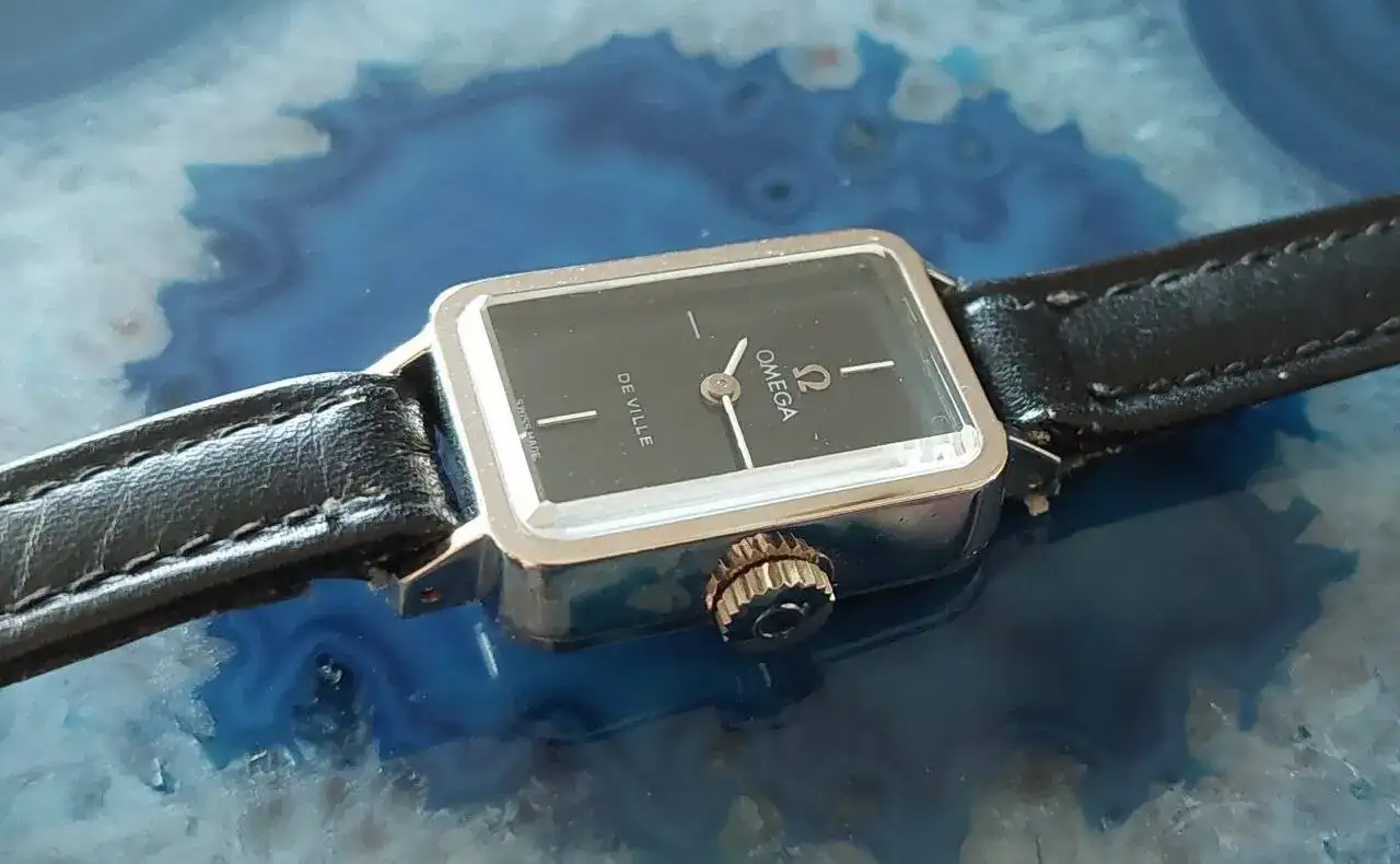 Omega Emeraude de los 70, colección Andrew Grim, cristal Zafiro con talla esmeralda