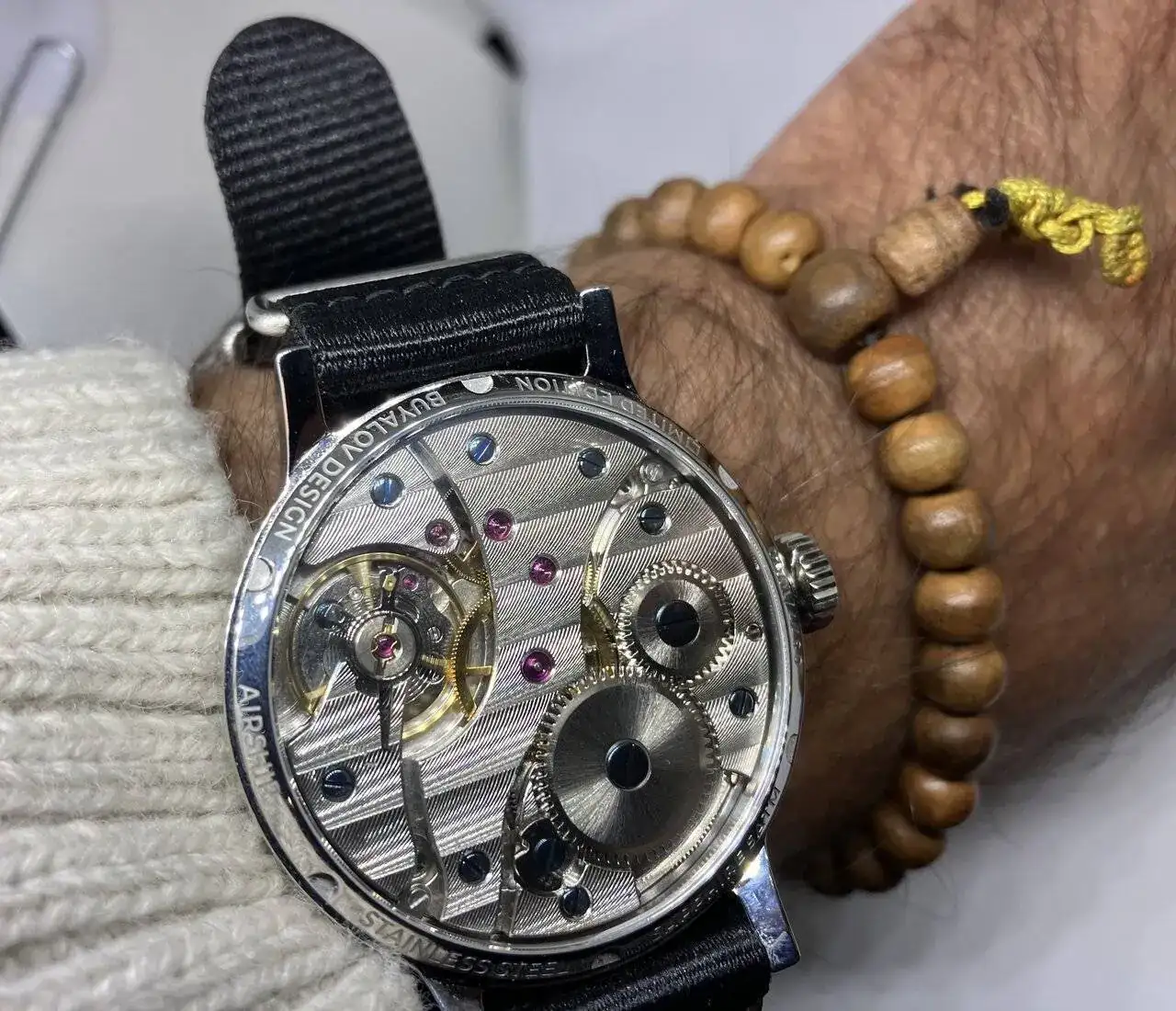 Hoy llevo este Buyalov del revés, y me gusta màs que del derecho. ¿La hora?¿ A quién le importa la hora?. Je, je, je