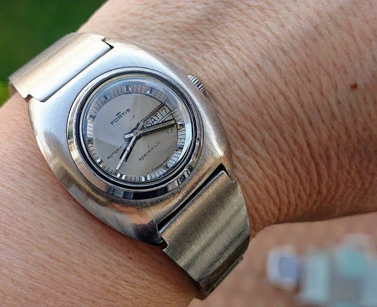 Hoy toca este Breil que ya tiene poco más de 20 años…reloj cabezón donde los haya con un cristal de lupa considerable que hace imposible hacer una foto sin reflejos 😅 así va a ser imposible ganar la taza 🤣🤣🤣 por cierto, no está puesto en día…😁 pasad un buen fin de semana 🙋🏻♂️