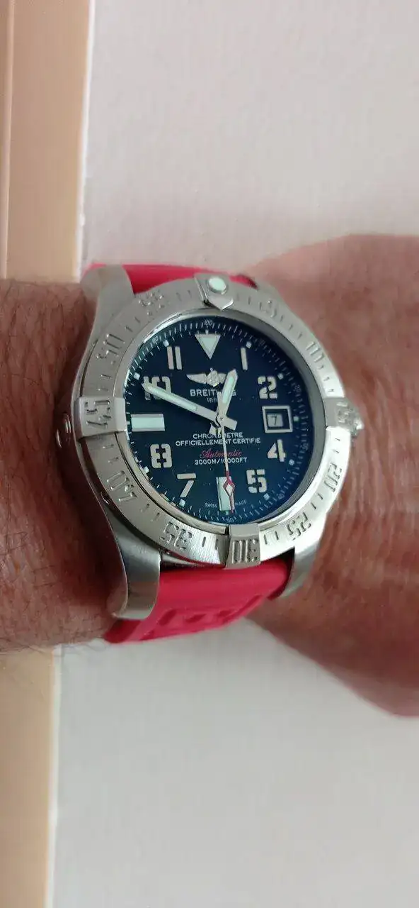 y este Breitling.... Queda genial con el caucho rojo !!.