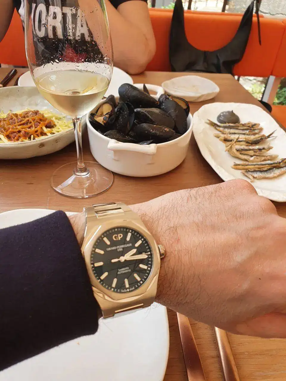 Qué bueno, un vinito blanco y buen pescaíto, acompañado de este magnífico Laureato. No me voy a quejar mucho, que yo estuve de inauguración esta mañana y también cayeron dos blancos fresquitos antes de comer. Saludos !
