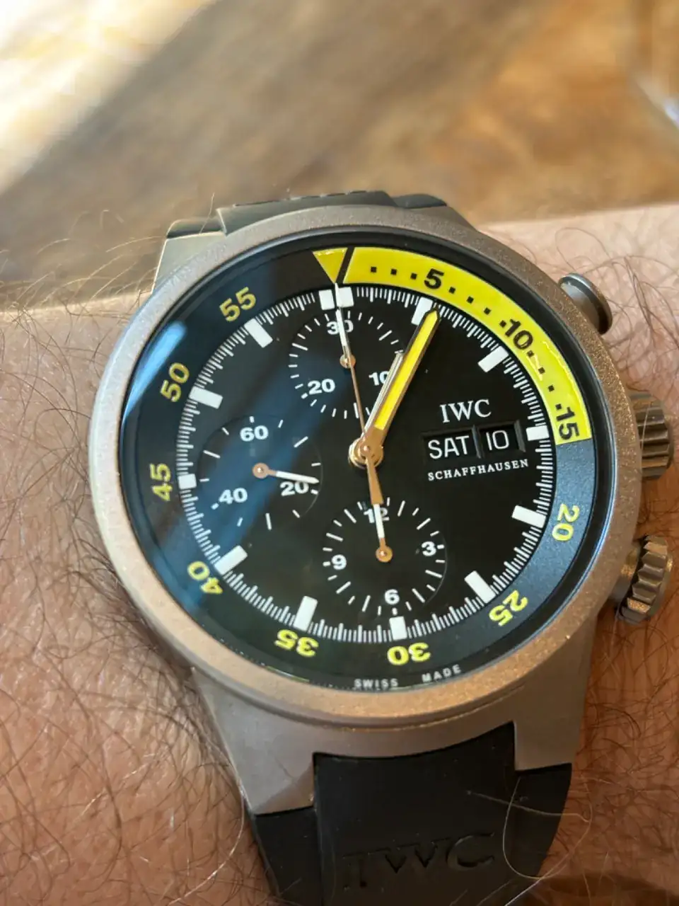 Pues la correa la encontré en una relojería hace años y la compré porque me encantó para el Carrousel que salió ayer, pero al llegar el Comet se la quedó, porque coincide muy bien el tono de amarillo y el Tissot es más fácil al tener más superficie negra que amarilla. Lo gracioso es que es una correa marcada para Radiant.
