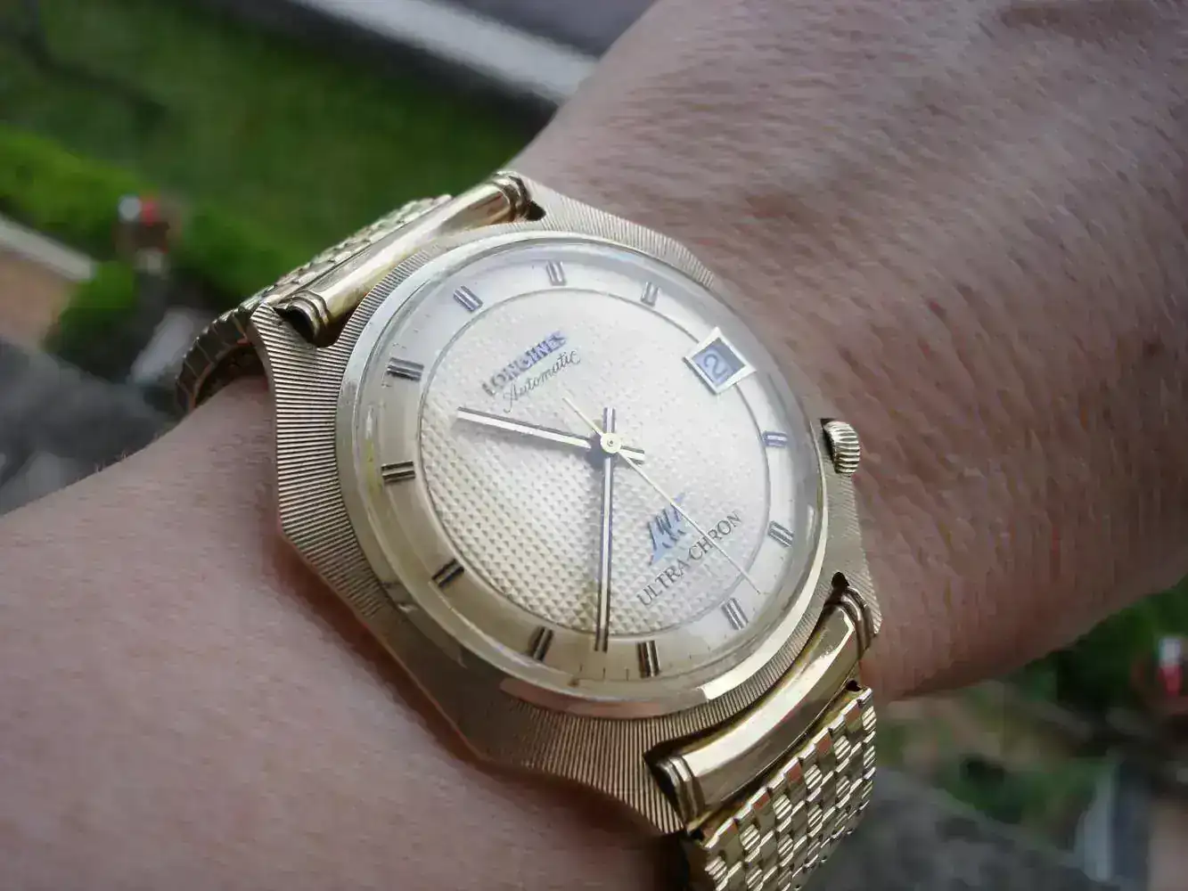 ; y el brazalete es original de Longines también, no de joyero español) y a primera vista suele dar la impresión de ser de oro. Por el contrario, tengo un Ultrachron que sí es de oro y pasa más desapercibido porque a primera vista da la impresión de ser chapado