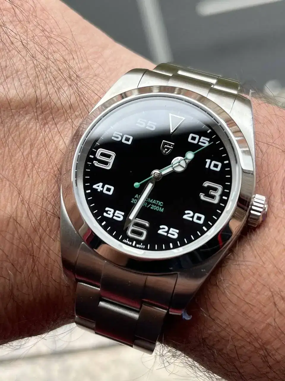 Es un precioso homenaje al Air King, con materiales excelentes y un calibre estupendo. Yo también tengo uno. Lo gracioso es que en la tapa trasera aparece un grabado más bien de explorador que de aire, no te parece??Que lo disfrutes. Saludos!Raining day at the Tower
